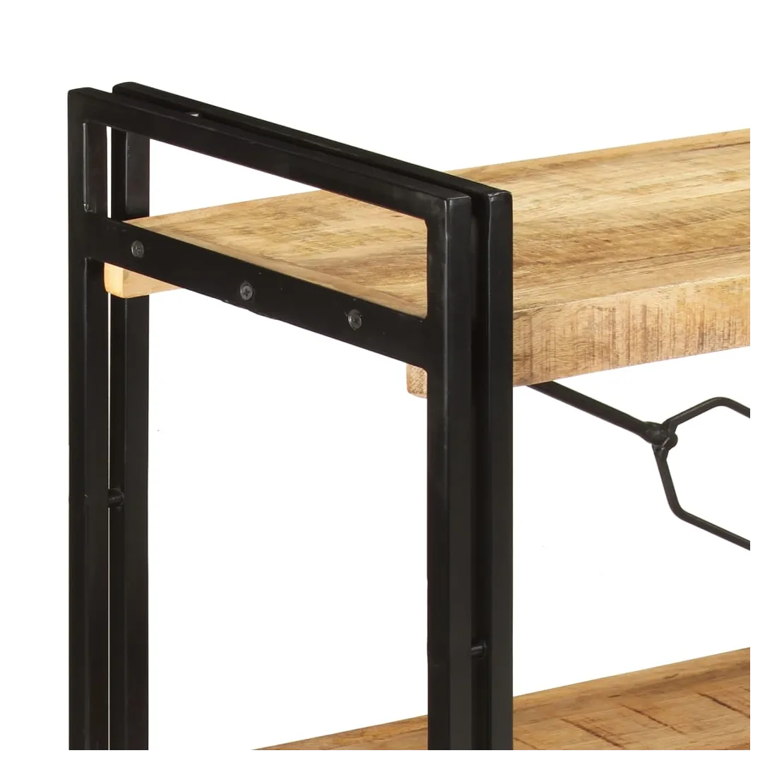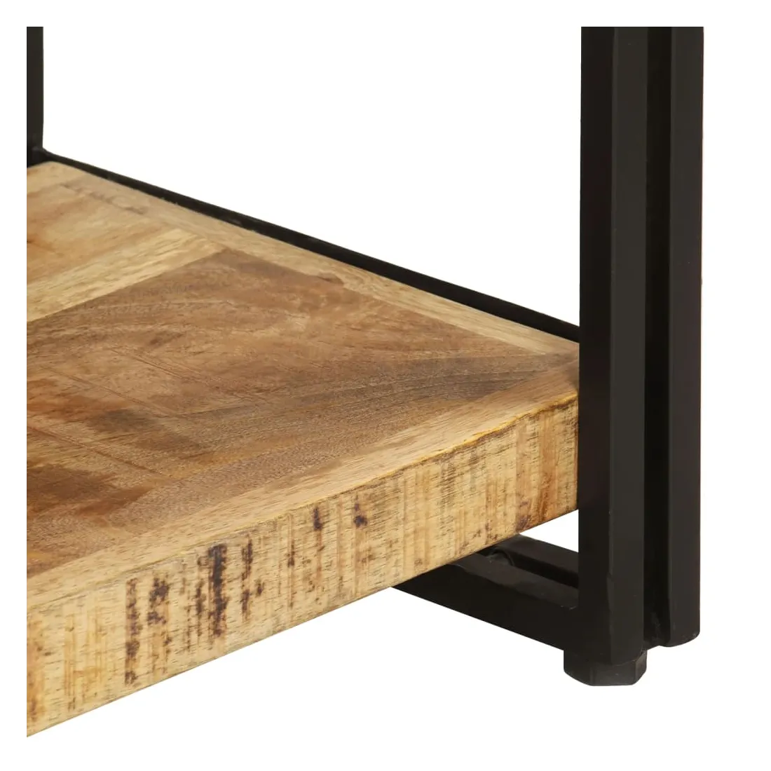 - Matériau : bois de manguier brut solide avec une finition naturelle, acier enduit de poudre