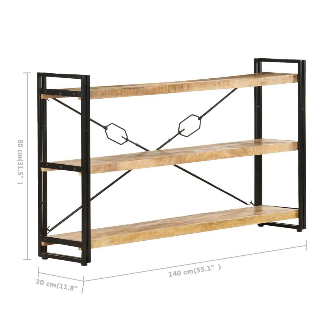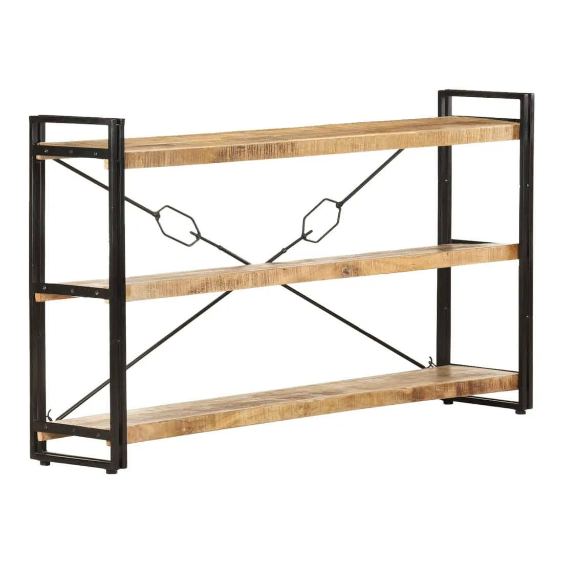 Ajoutez une touche de style industriel à votre maison ou bureau avec cette bibliothèque à 3 niveaux en bois. Cette bibliothèque constitue une solution idéale pour stocker et afficher votre collection de livres, magazines, documents ou objets décoratifs tels que des cadres photo et des objets de collection. La bibliothèque a un cadre robuste en acier enduit de poudre qui lui donne un aspect industriel. Les étagères sont fabriquées en bois de manguier brut et solide, qui est stable, durable et beau, et l'artisanat ajoute à son style rétro spectaculaire. Chaque étape du processus est réalisée avec le plus grand soin, que ce soit le polissage, la peinture ou le laquage. L'artisanat et les beaux grains de bois font de chaque meuble un objet unique et légèrement différent l'un de l'autre. Remarque importante : Les couleurs varient d'un meuble à l'autre, rendant chaque bibliothèque unique. La livraison est aléatoire, ce qui garantit l'exclusivité et l'individualité de votre produit.