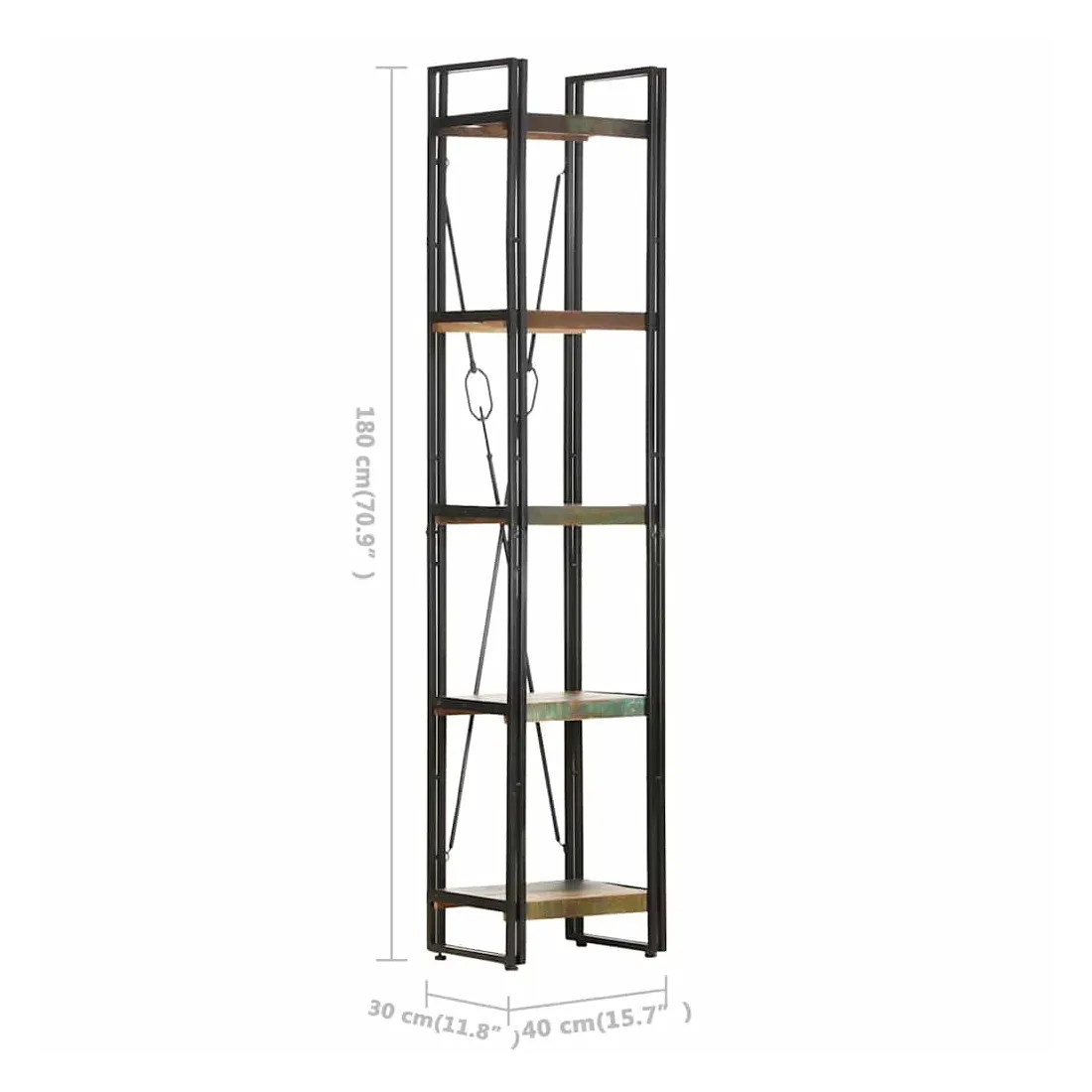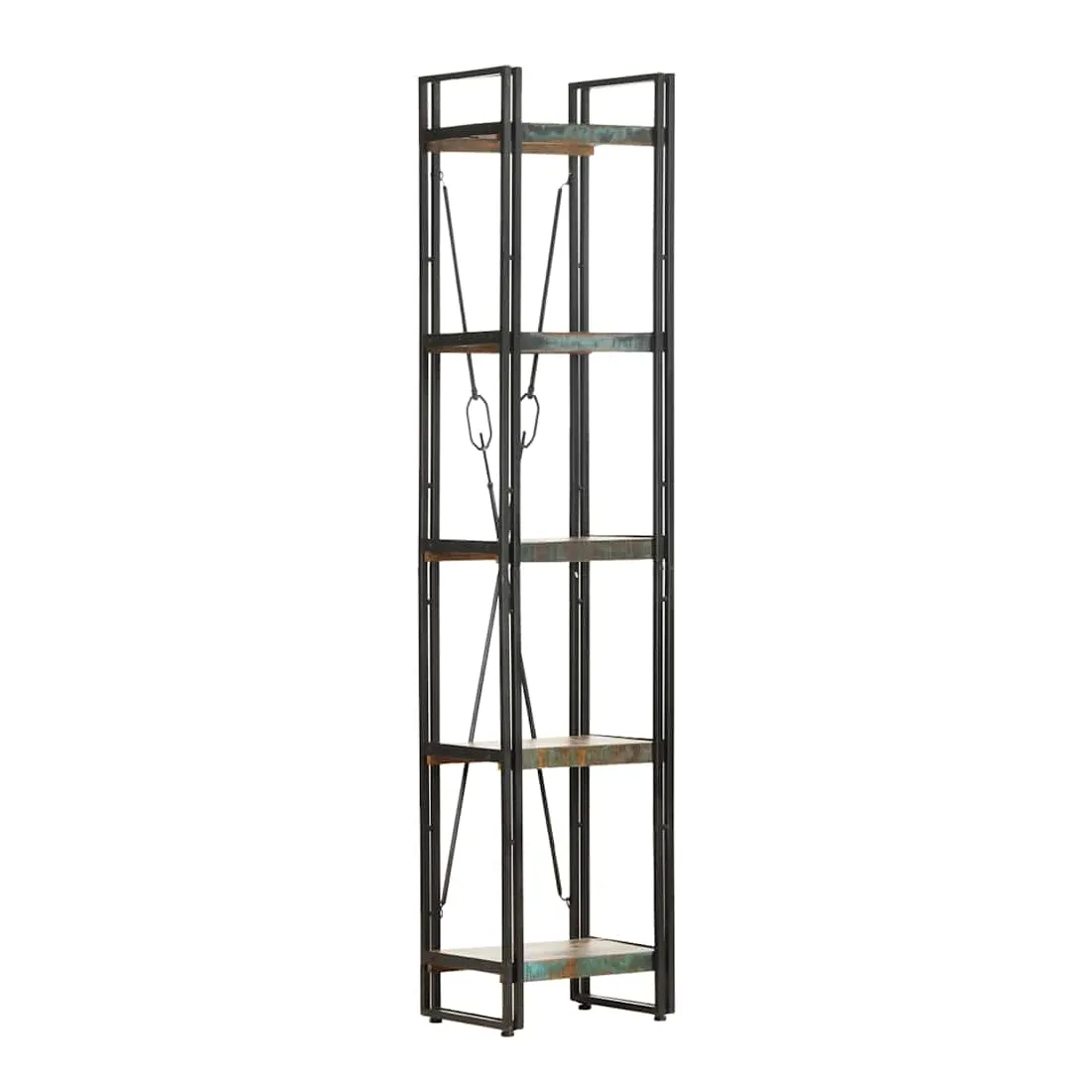 - Matériau : bois de récupération solide avec une finition de couleur mélangée, acier enduit de poudre