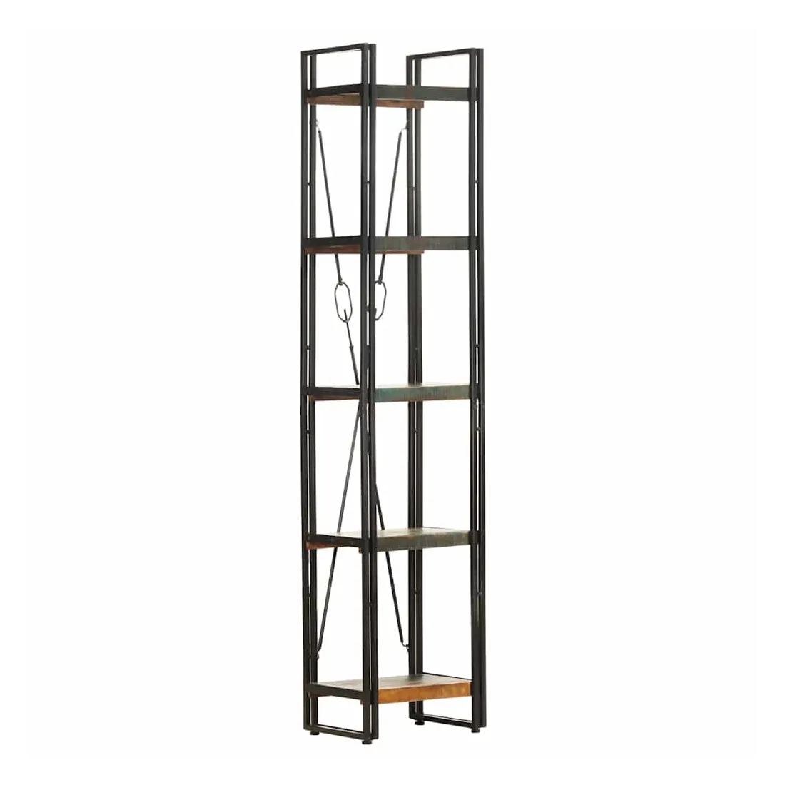Ajoutez une touche de style industriel à votre maison ou bureau avec cette bibliothèque à 5 niveaux en bois. Cette bibliothèque offre une solution idéale pour stocker et afficher votre collection de livres, magazines, documents ou objets décoratifs tels que des cadres photo et des objets de collection. La bibliothèque est dotée d'un cadre solide en acier enduit de poudre qui lui donne un aspect industriel. Les étagères rétro sont en bois solide de récupération provenant des solives, des planchers et des poutres de soutènement de vieux bâtiments démolis. Elles peuvent être composées de différents types de bois tels que le pin, le teck, le hêtre, le chêne, le bois de manguier, l'acacia, etc. Cela signifie que le bois de récupération conserve les caractéristiques de ces différents types de bois. Le bois de récupération est déjà vieilli, érodé et séché, donc il ne rétrécit et ne se plie pas. Chaque étape du processus est réalisée avec le plus grand soin, que ce soit le polissage, la peinture ou le laquage. L'artisanat et les grains de bois accrocheurs rendent chaque meuble distinctif et légèrement différent l'un de l'autre. Remarque importante : les couleurs et le grain du bois varient d'une pièce à l'autre, ce qui rend chaque étagère d'exposition unique. La livraison est aléatoire, ce qui garantit l'exclusivité et l'individualité de votre produit.