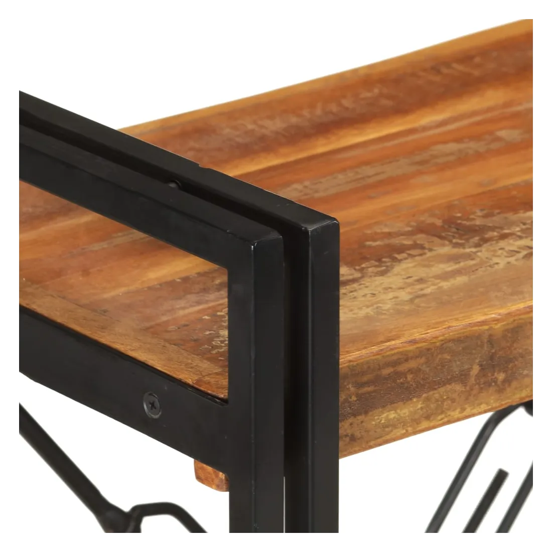 - Matériau : bois de récupération solide avec une finition de couleur mélangée, acier enduit de poudre