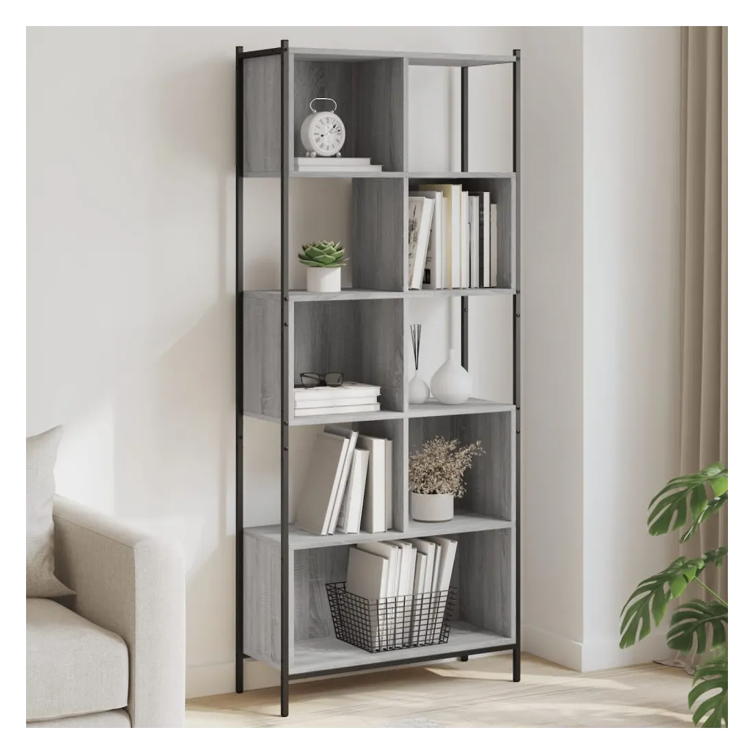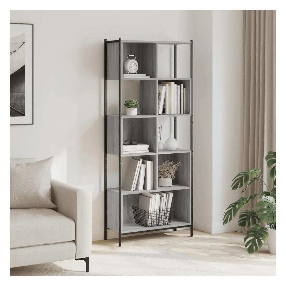 Cette bibliothèque est une aide précieuse pour l'organisation du désordre et un supplément intemporel à votre décoration intérieure. Grand espace de rangement : le porte-livres offre un grand espace de rangement pour stocker et exposer vos livres, magazines, objets de décoration, cadres photo, souvenirs de vacances et trophées tout en améliorant votre espace de vie.Construction robuste : l'acier revêtu de poudre et le bois d'ingénierie garantissent une construction robuste pour l'étagère de rangement et offrent un support solide à vos articles.Applications diverses : l'étagère d'affichage s'adapte facilement à n'importe quelle pièce. Vous pouvez la placer dans le salon pour y exposer des décorations, dans le bureau pour ranger des livres et des documents, dans la chambre à coucher pour stocker des objets du quotidien et dans la cave pour entreposer divers articles. Attention :Pour éviter qu'il ne soit renversé, ce produit doit être utilisé avec le dispositif de fixation au mur fourni.