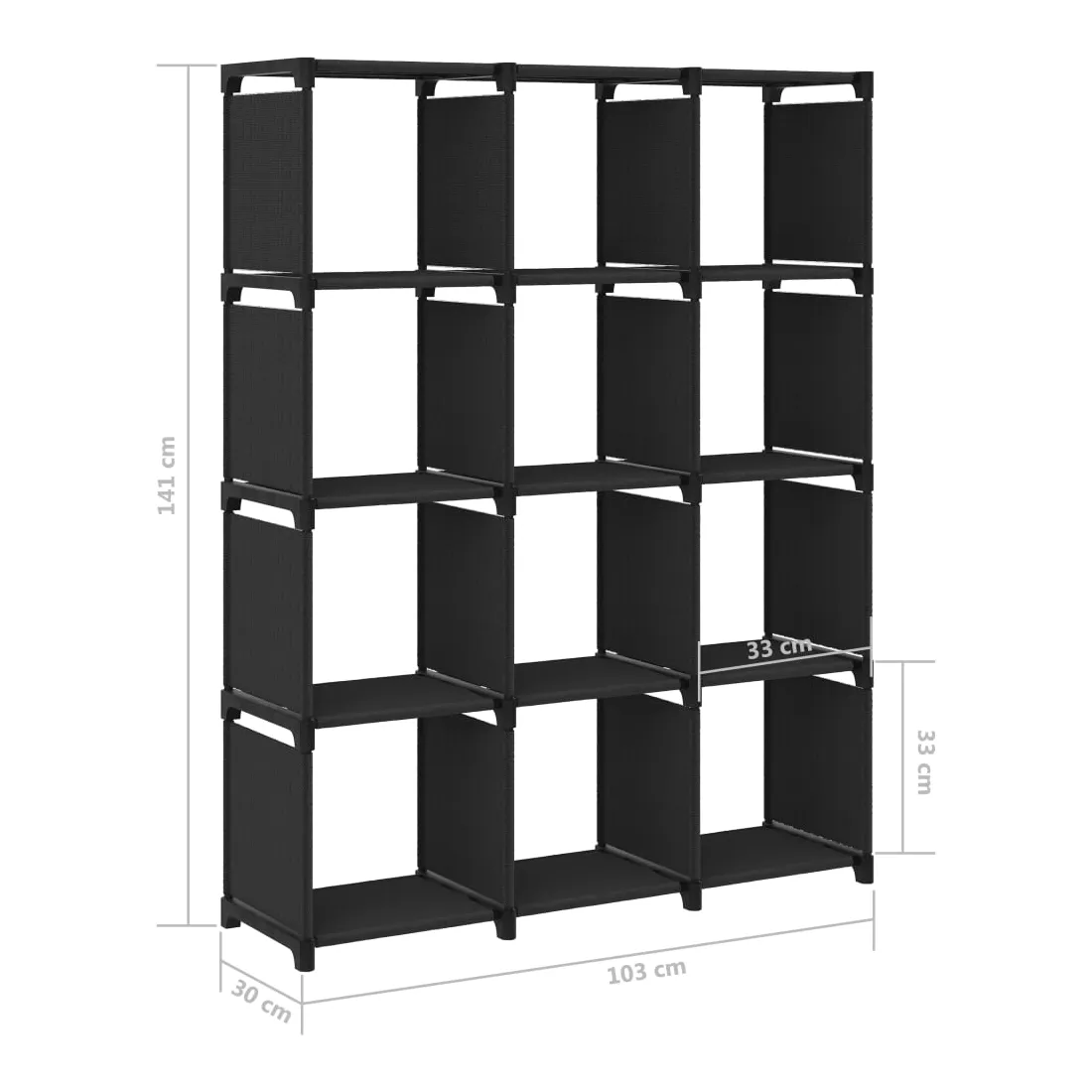 Notre étagère de présentation ajoute un look moderne à votre décoration intérieure. Le support de stockage est fait de tissu et d'un cadre en acier, ce qui le rend fort et stable. Cette étagère autoportante a 12 compartiments ouverts et peut servir d'endroit idéal pour afficher des livres, des objets de collection, des photos, des récompenses, de petites plantes en pot, etc. Grâce à sa construction légère, cet organisateur de maison est également facile à déplacer.