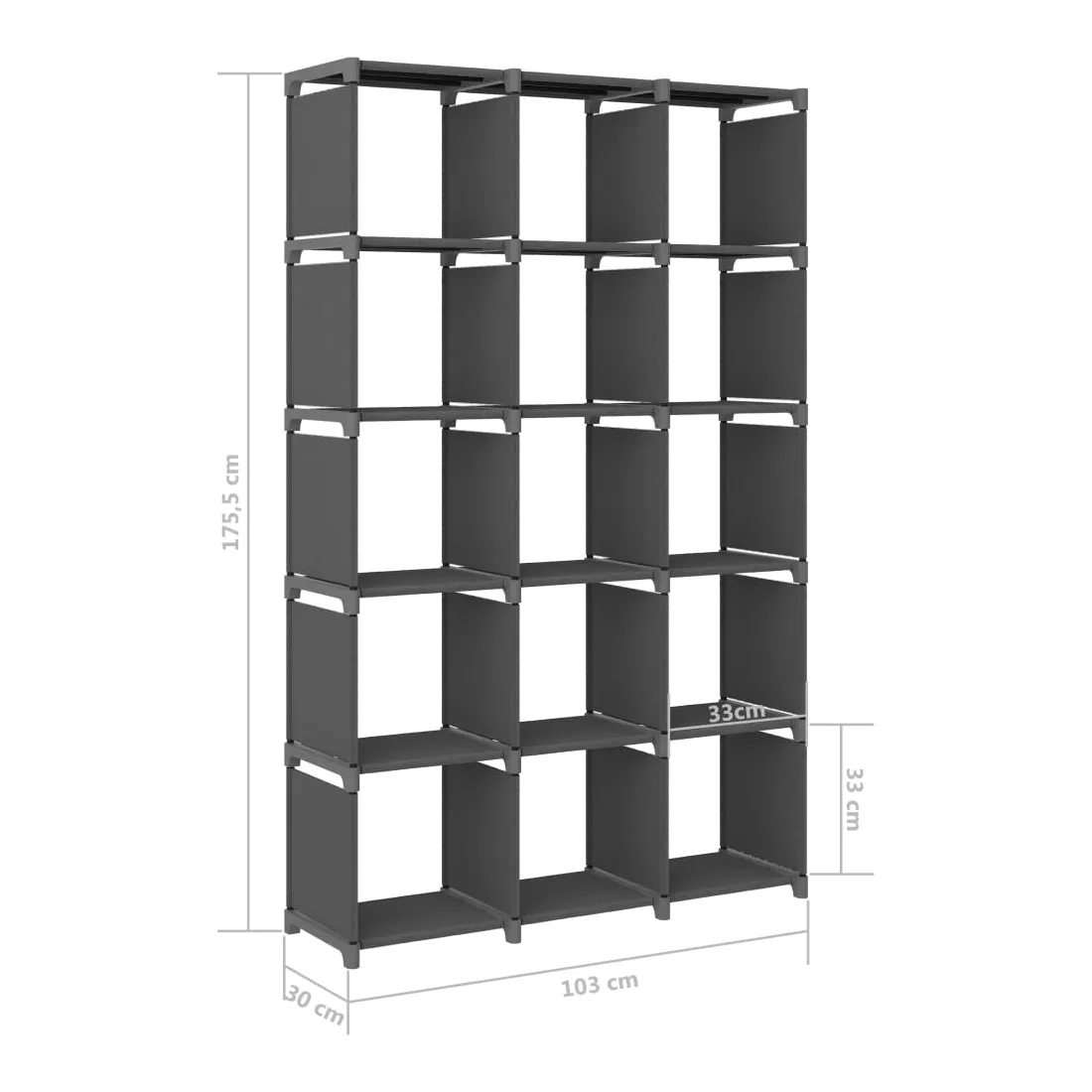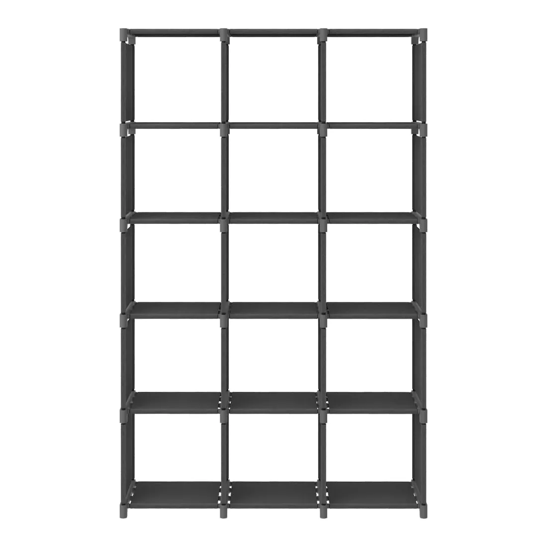 Notre étagère de présentation ajoute un look moderne à votre décoration intérieure. Le support de stockage est fait de tissu et d'un cadre en acier, ce qui le rend fort et stable. Cette étagère autoportante a 15 compartiments ouverts et peut servir d'endroit idéal pour afficher des livres, des objets de collection, des photos, des récompenses, de petites plantes en pot, etc. Grâce à sa construction légère, cet organisateur de maison est également facile à déplacer.