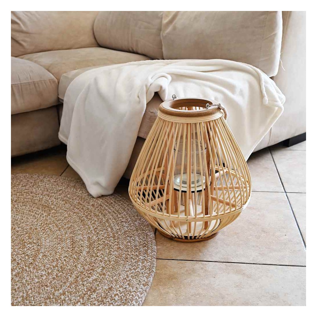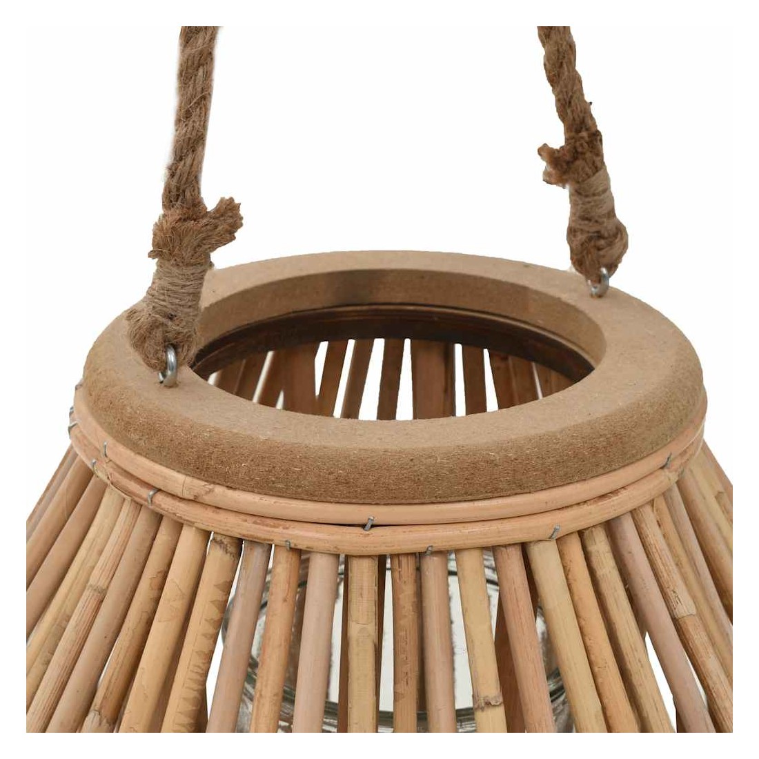 • Matériau : lanterne en osier + pot de bougie en verre