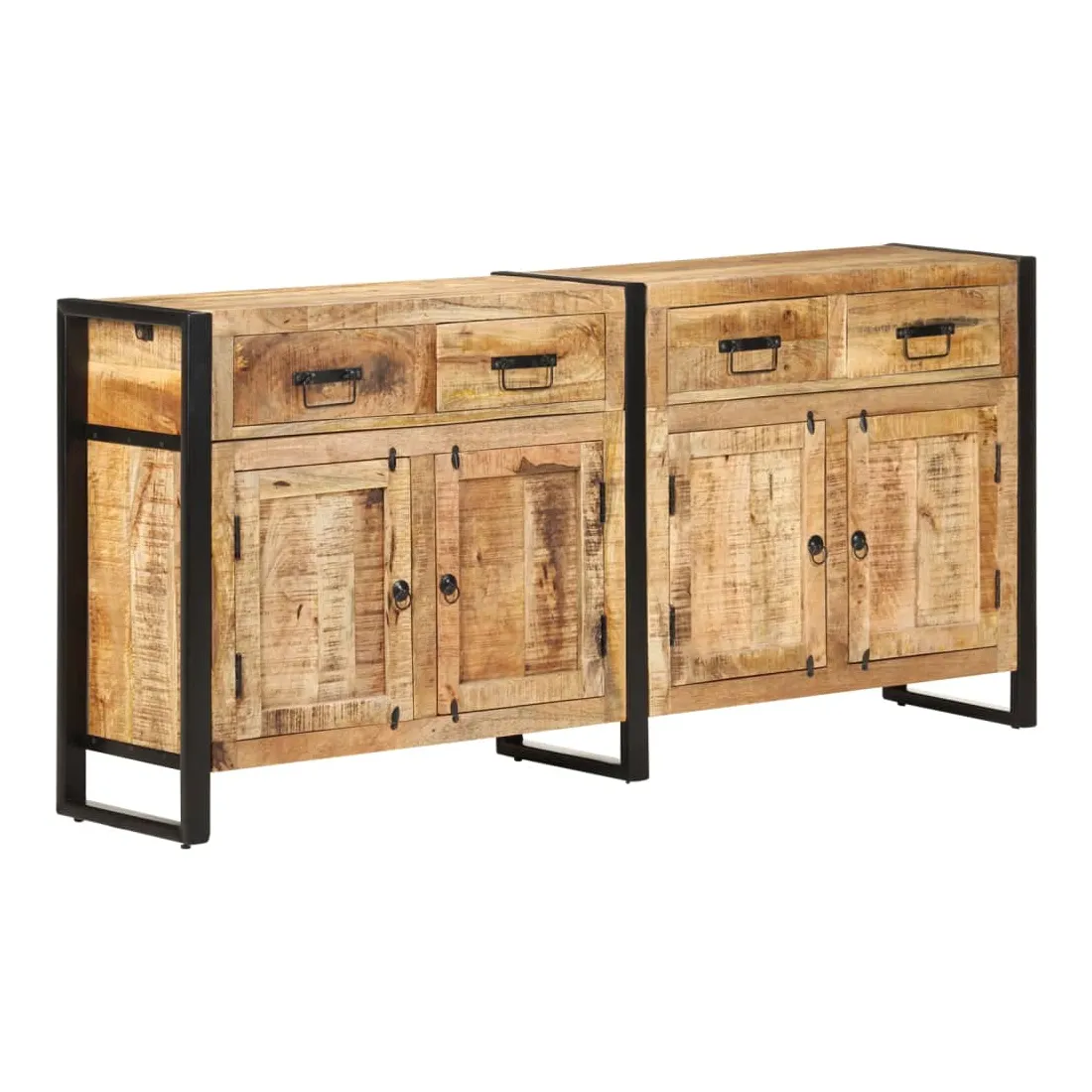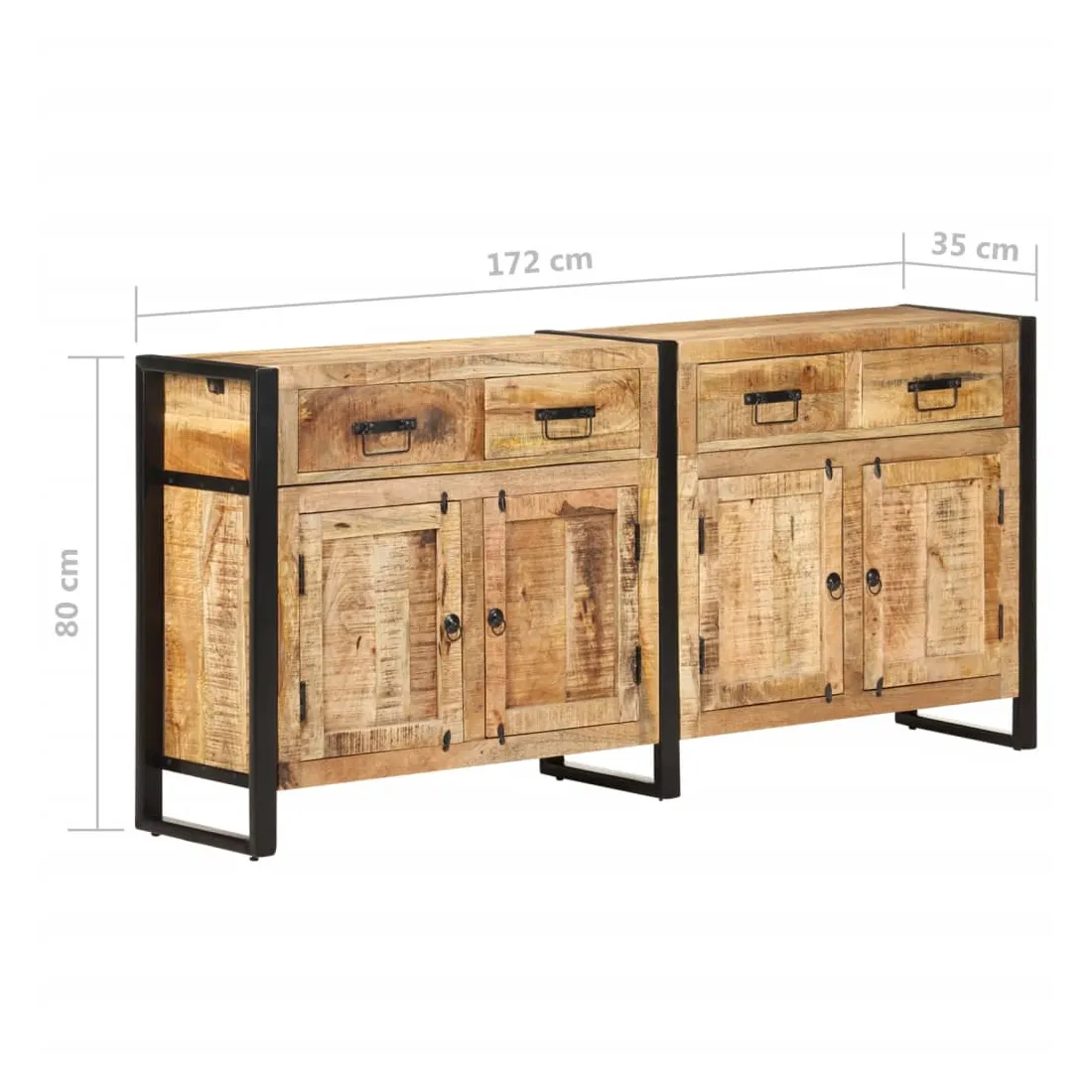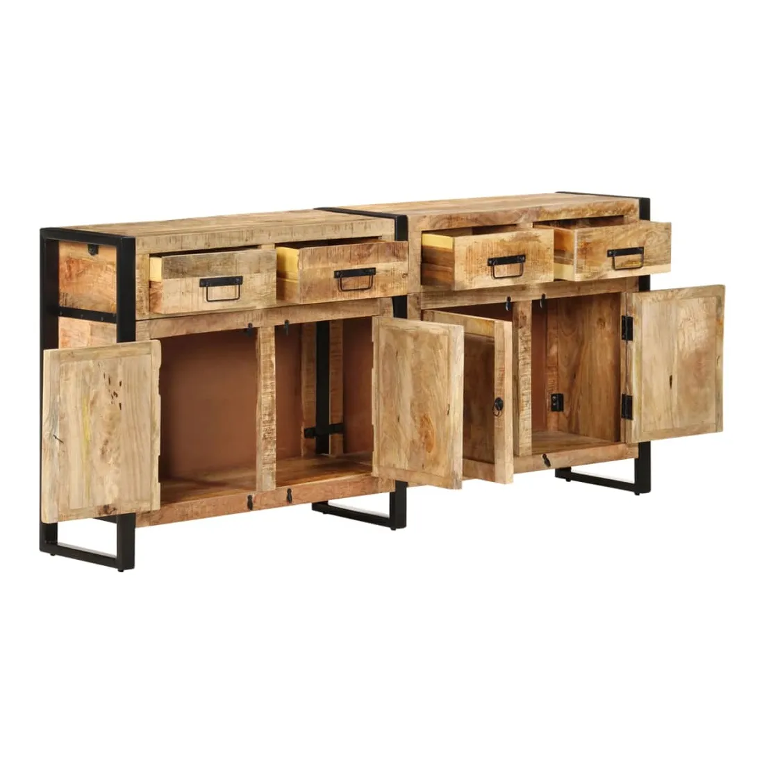 Ce buffet en bois sera certainement un supplément pratique et accrocheur dans votre maison. Bois de manguier massif : ce meuble de rangement est fait de bois de manguier massif, un bois dur tropical. Il a la force de soutenir le poids et de résister à l'usure du temps.Fait entièrement à la main : l'artisanat exquis et les beaux grains de bois rendent chaque pièce distinctive et légèrement différente l'une de l'autre.Cadre robuste et stable :le cadre en acier enduit de poudre contribue à la structure stable et robuste.Grand espace de rangement :l'armoire en bois comprend 2 compartiments avec portes et 4 tiroirs pour ranger divers objets. Remarque :Les couleurs varient d'une pièce à l'autre, rendant chaque pièce unique. La livraison est aléatoire. Attention :Afin d'éviter qu'il ne bascule, ce produit doit être utilisé avec le dispositif de fixation murale fourni