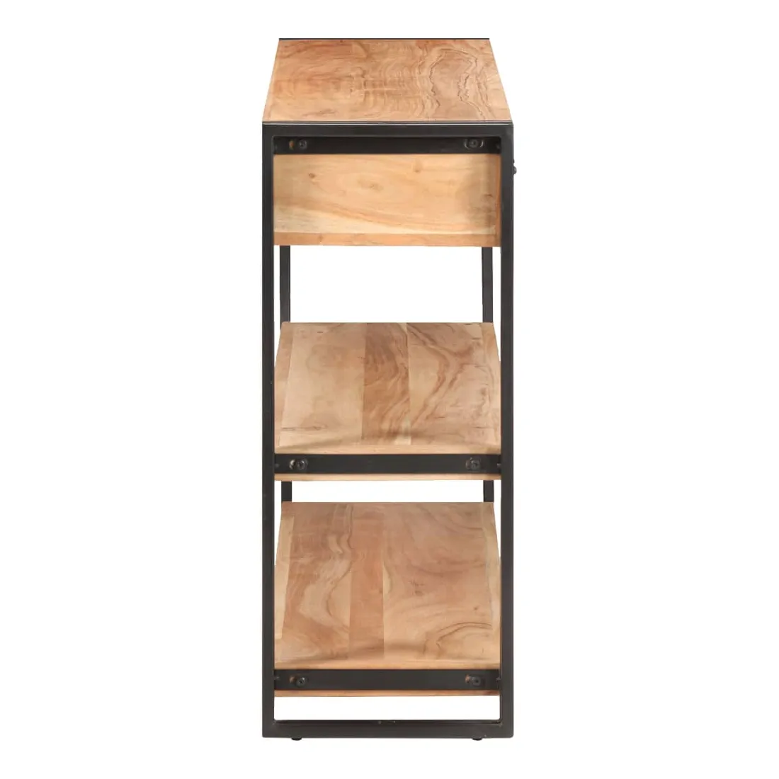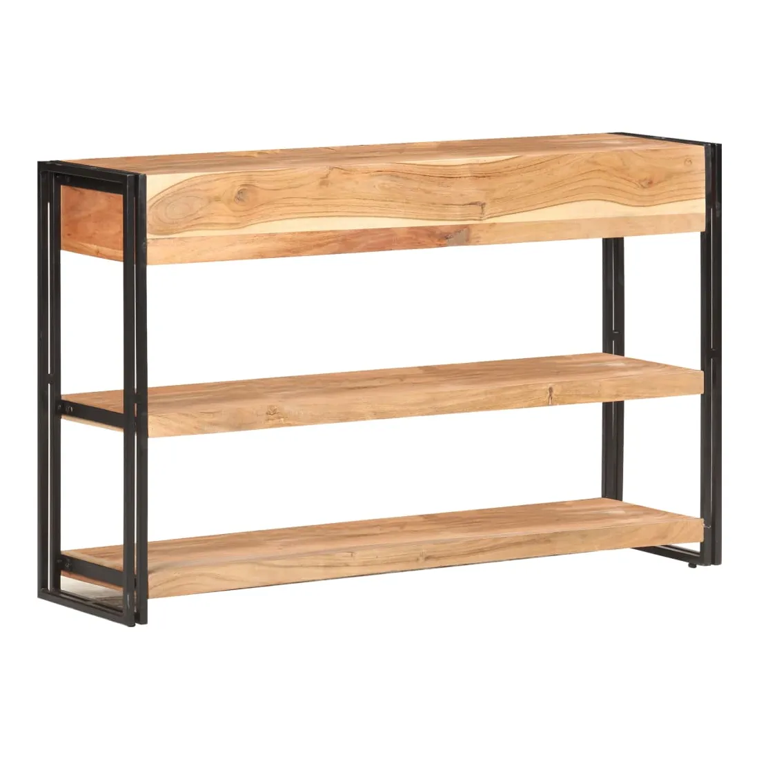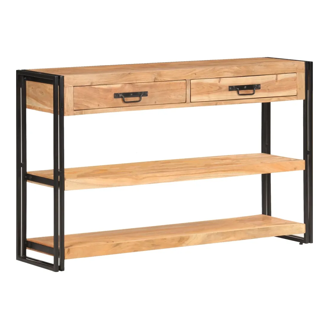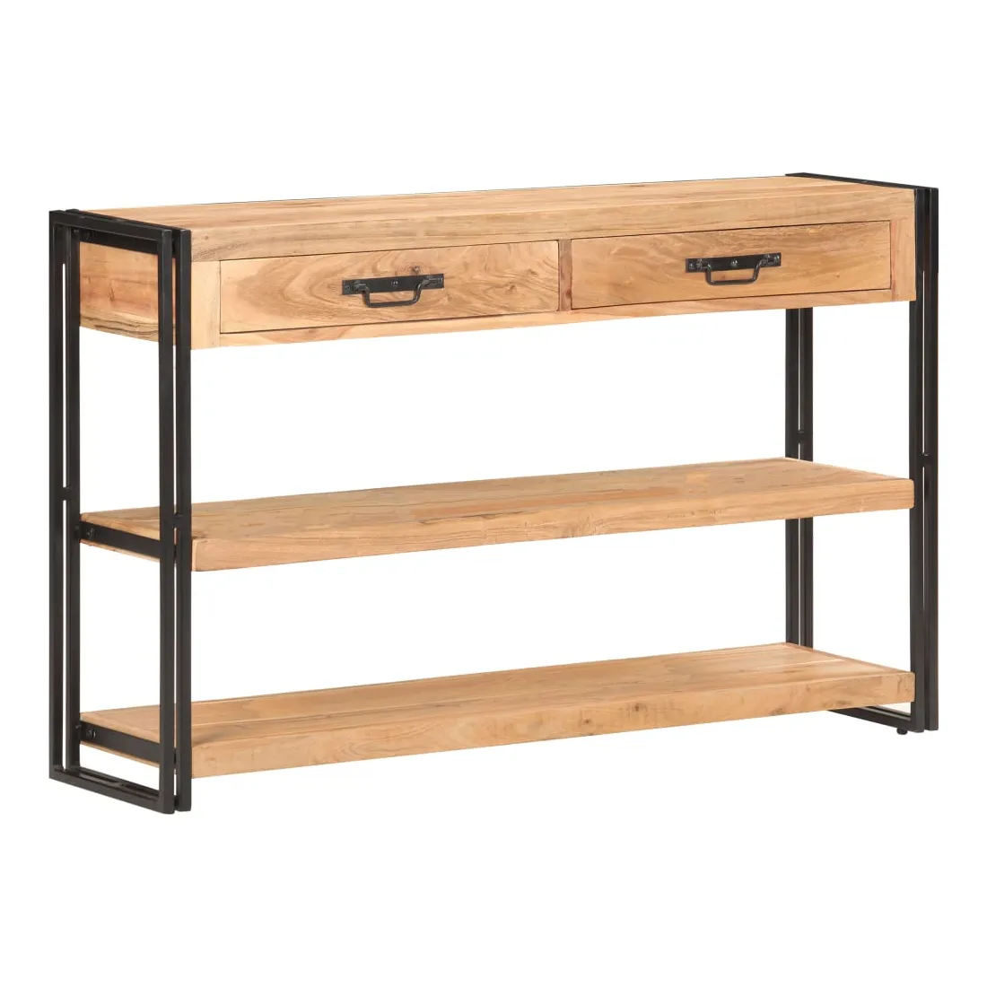 Créez une maison rangée avec cet élégant buffet en bois ! C'est un complément vraiment décoratif à votre maison. Cette armoire de rangement est faite de bois d'acacia massif, un bois dur aux grains denses. Cette armoire de rangement au design magnifique est stable, durable et attire l'attention. De plus, l'artisanat exquis et les belles veines du bois font chaque pièce légèrement différente l'une de l'autre. Le solide cadre en fer enduit de poudre ajoute à sa robustesse. Le dessus robuste est idéal pour afficher des objets décoratifs, comme des cadres photo ou des plantes en pot. De plus, la table console dispose de 2 tiroirs et de 2 étagères, de sorte que vous puissiez garder les livres, magazines et autres articles bien organisés et à portée de main. Remarque importante : les couleurs varient d'une pièce à l'autre, rendant chaque pièce unique. La livraison est aléatoire, garantissant l'exclusivité et l'individualité de votre produit.