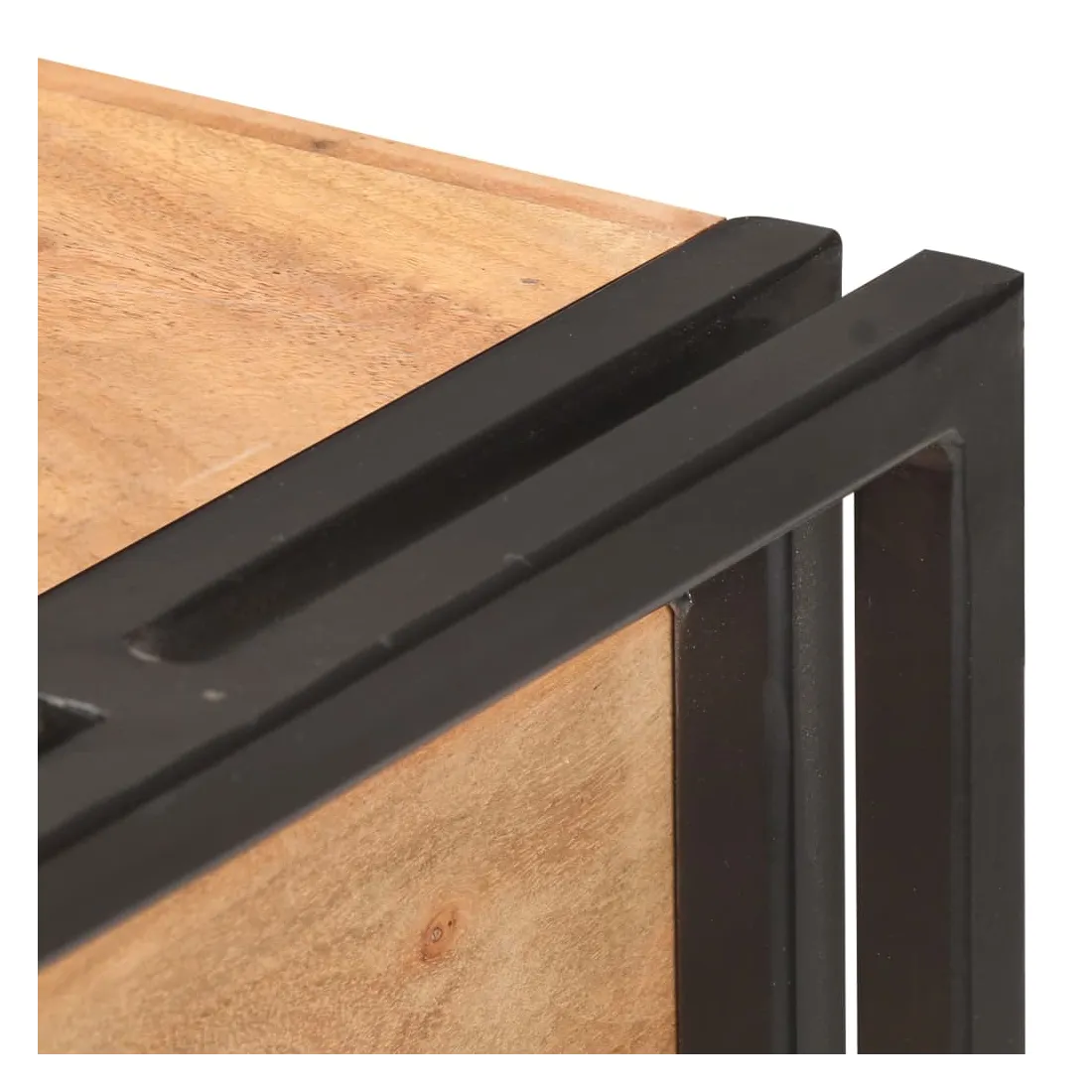 - Matériau : bois d'acacia massif avec une finition naturelle, fer enduit de poudre