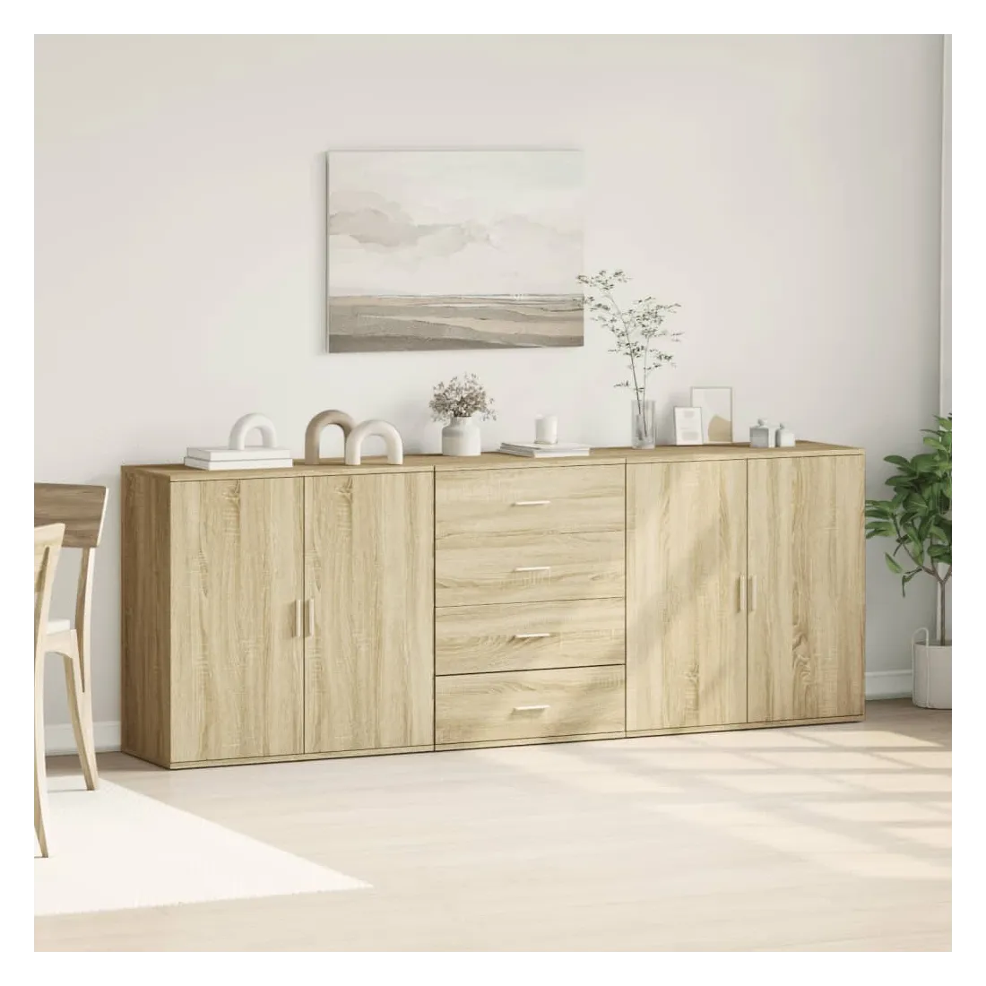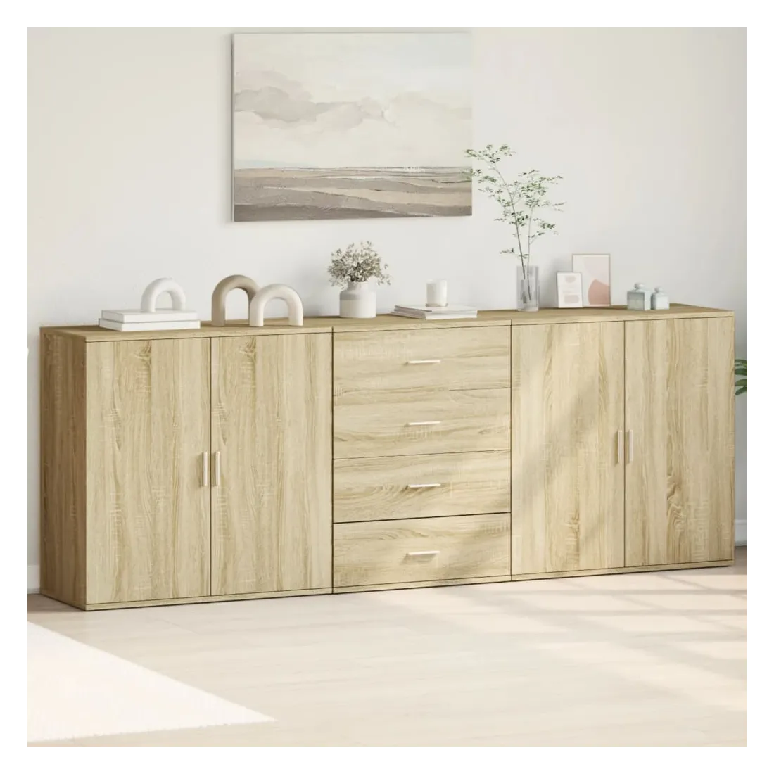 Ces buffets robustes sont conçus pour être un point de mire de votre pièce avec un design tendance mais pratique. Matériau durable : le bois d'ingénierie est d'une qualité exceptionnelle avec une surface lisse et présente également résistance, stabilité et résistance à l'humidité. Fabriquée en bois d'ingénierie, le meuble de rangement est facile à nettoyer avec un chiffon humide.Grand espace de rangement : ce buffet offre un espace de rangement pratique pour garder vos magazines, livres, télécommandes et autres petits objets bien organisés et à portée de main.Large application : le dessus de ce buffet offre plus d'espace pour placer des objets, adapté aux téléphones portables, livres, lampes, etc. Attention :Pour éviter qu'il ne bascule, ce produit doit être utilisé avec le dispositif de fixation murale (non fourni).