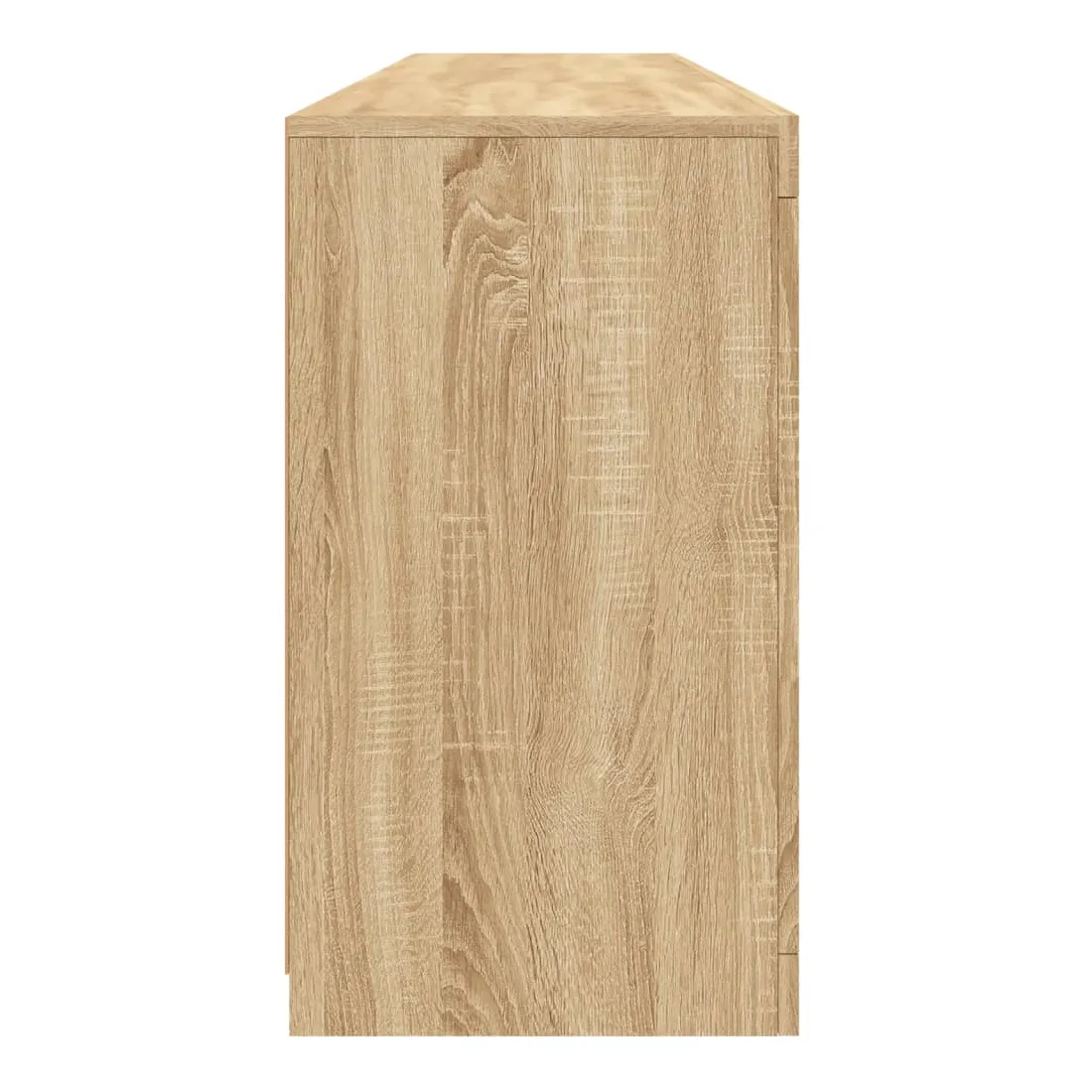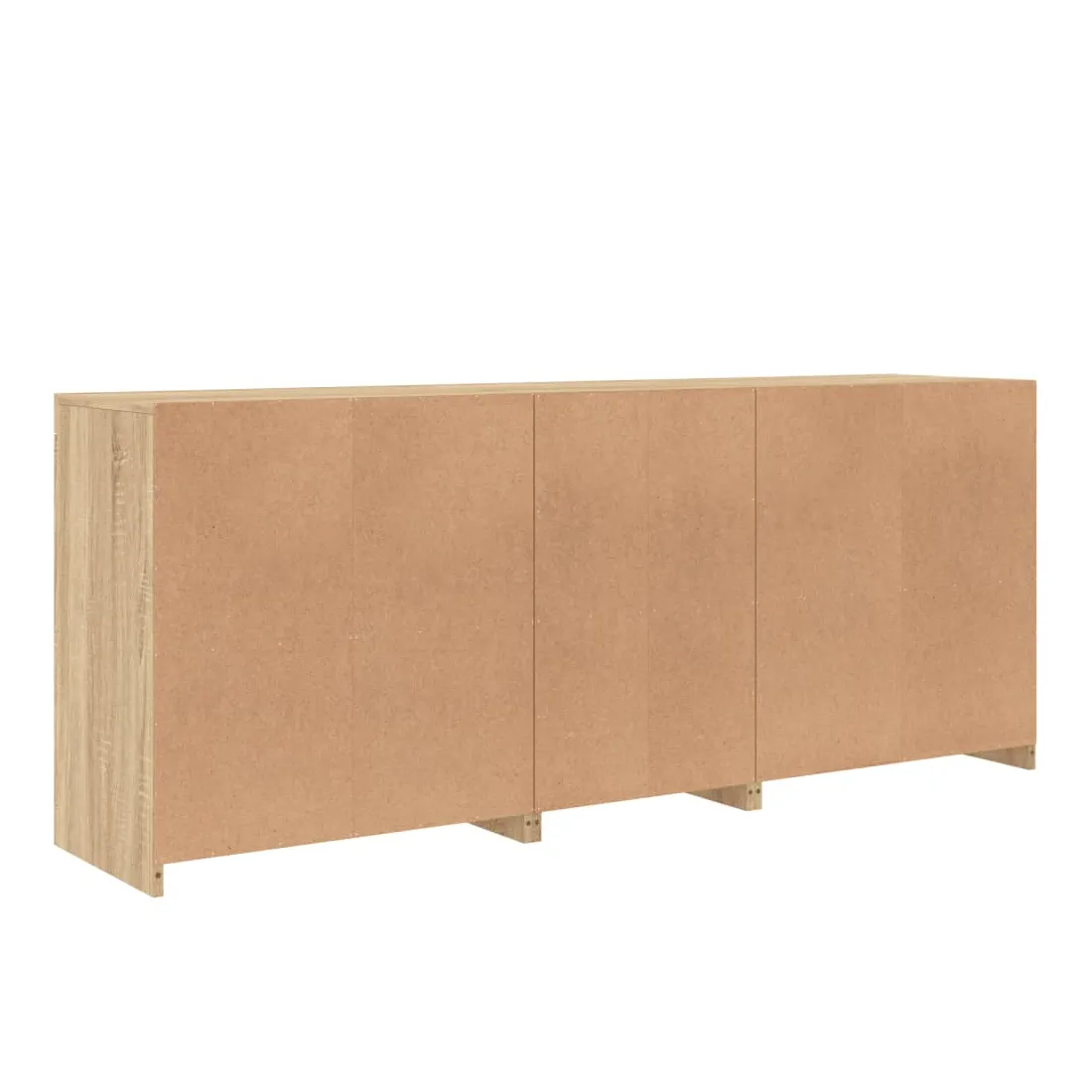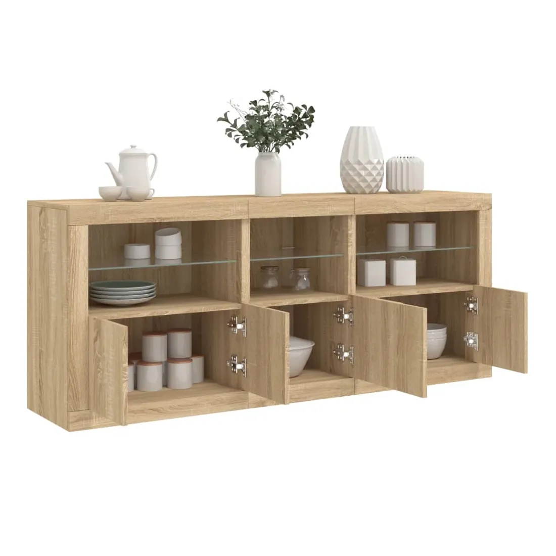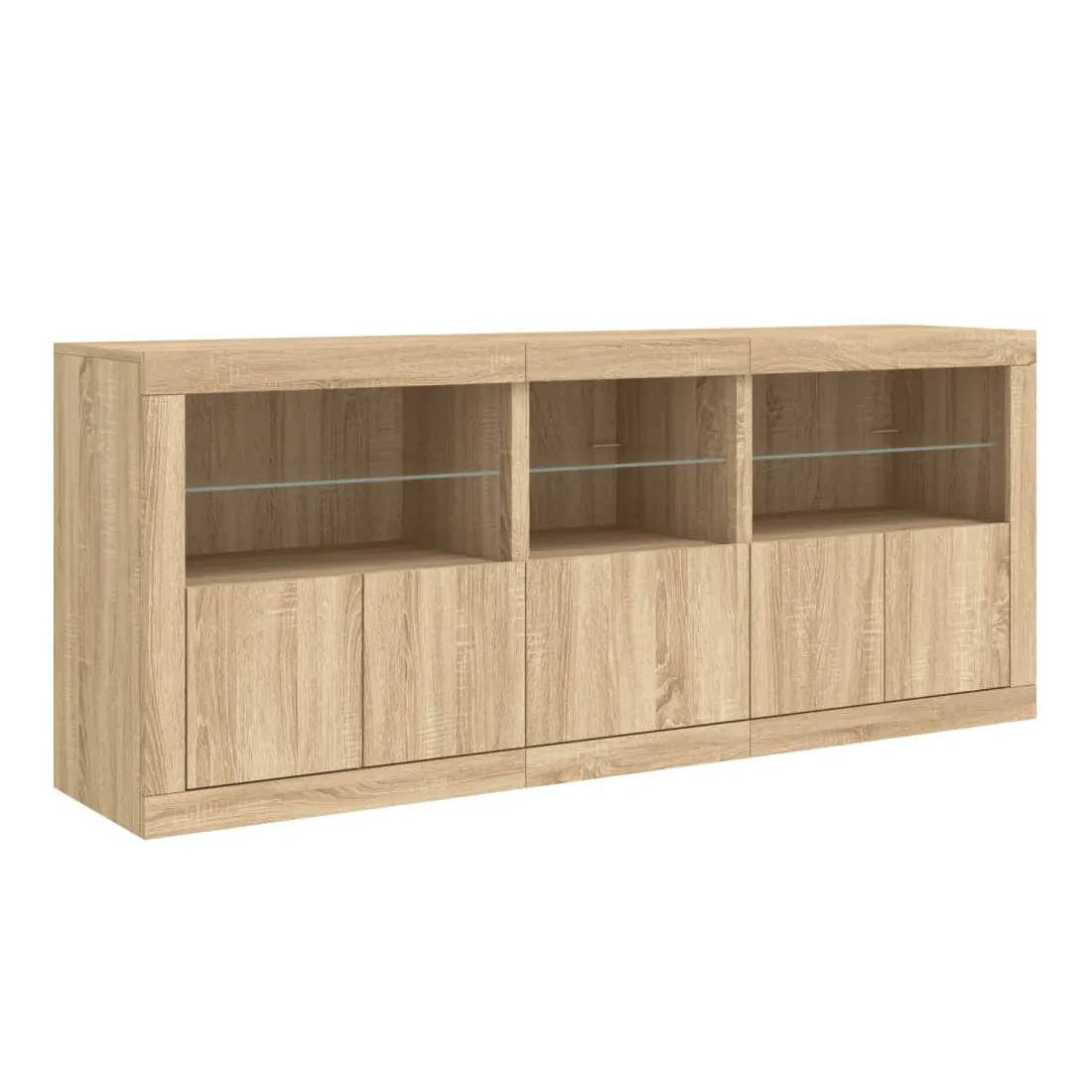 Décorez votre pièce avec ce buffet moderne avec éclairage LED, il s'harmonise facilement avec les meubles de tout style de votre maison. Matériau durable : le bois d'ingénierie est d'une qualité exceptionnelle avec une surface lisse et présente également résistance, stabilité et résistance à l'humidité.Lumières LED RVB : le buffet est équipé de lumières LED RVB vibrantes. Avec divers menus personnalisables, vous pouvez changer sans effort la couleur des lumières et même les régler automatiquement. Ces lumières LED renforcent non seulement l'aspect contemporain du buffet, mais aussi son attrait pour la mode.Grand espace de rangement : l'armoire de rangement offre beaucoup d'espace pour garder vos objets du quotidien bien rangés et facilement accessibles.Fonction d'exposition : la partie supérieure robuste de l'armoire d'entrée est idéale pour exposer des objets décoratifs, des cadres photo ou des plantes en pot.Porte pratiques : gardez vos essentiels à l'abri de la poussière en les cachant derrière les portes de l'armoire latérale. Bon à savoir :Ce produit est doté d'un connecteur USB qui nécessite une source d'alimentation certifiée de USB 5V (non incluse). Attention :Pour éviter qu'il ne soit renversé, ce produit doit être utilisé avec le dispositif de fixation au mur fourni.