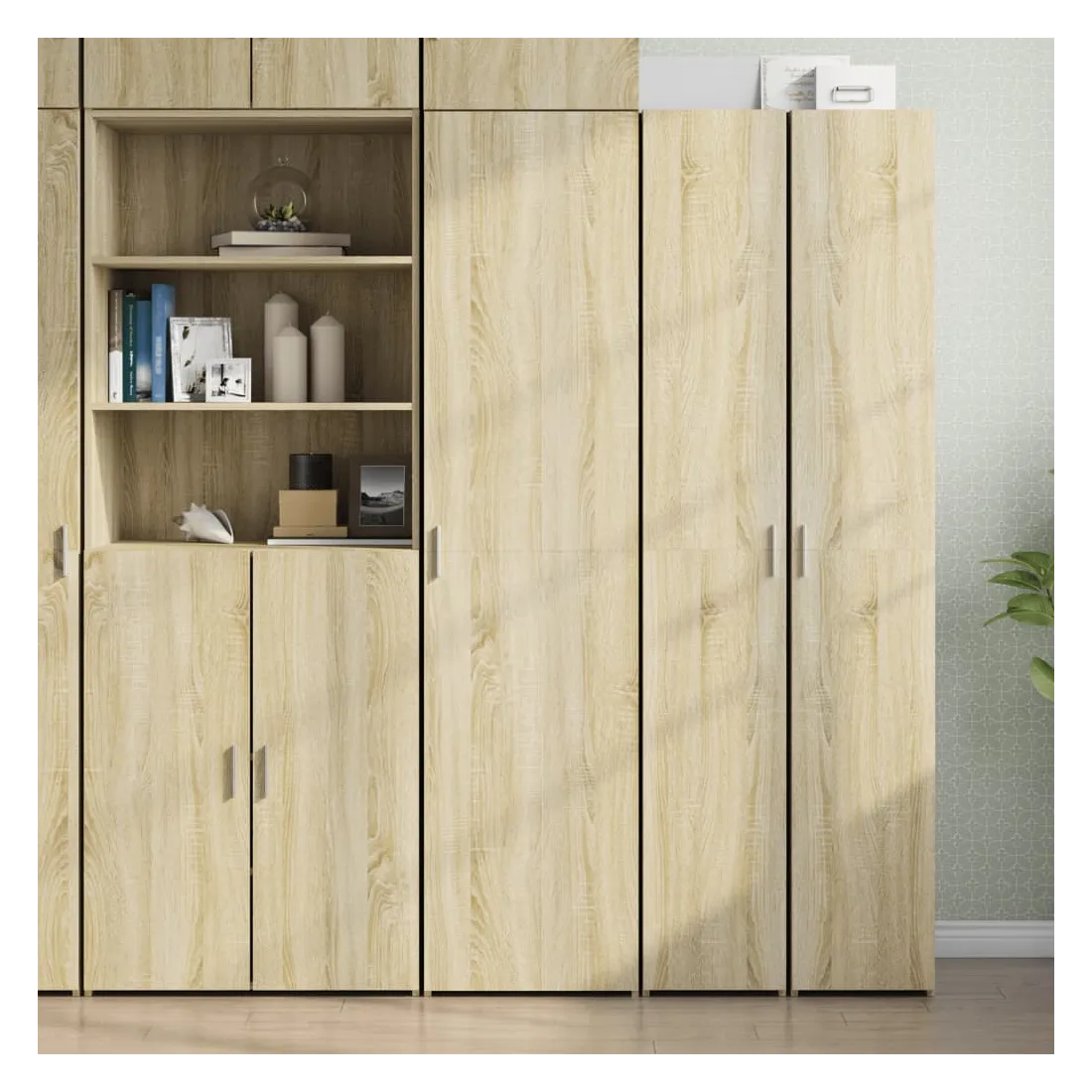 Vous cherchez un buffet haut de gamme stylé ? Ce buffet haut bien conçu ajoute un charme élégant à votre intérieur existant ! Matériau durable : le bois d'ingénierie est d'une qualité exceptionnelle avec une surface lisse et se caractérise également par sa solidité, sa stabilité et sa résistance à l'humidité.Facile à utiliser : l'armoire de rangement est livrée avec une poignée qui facilite l'ouverture et la fermeture du meuble tout en ajoutant une beauté supplémentaire.Grand espace de rangement : cette armoire haute est dotée de compartiments et de portes, ce qui offre un grand espace de rangement pour garder vos différents articles essentiels quotidiens bien organisés et facilement accessibles.Facile à entretenir : grâce à sa surface lisse, le buffet se nettoie facilement à l'aide d'un chiffon humide et nécessite peu d'entretien.Multifonctionnel : ce buffet haut avec étagère est polyvalent et convient aux chambres, salons, couloirs, garage, etc., selon vos besoins. Attention :Pour éviter qu'il ne bascule, ce produit doit être utilisé avec le dispositif de fixation murale fourni. Bon à savoir :Les vis et les chevilles pour l'intérieur du mur ne sont pas incluses. Nous vous conseillons de trouver et d'utiliser des vis et des chevilles adaptées spécifiquement à vos murs. Si vous n'êtes pas sûr, vous pouvez consulter un professionnel. Veuillez lire et suivre chaque étape des instructions.