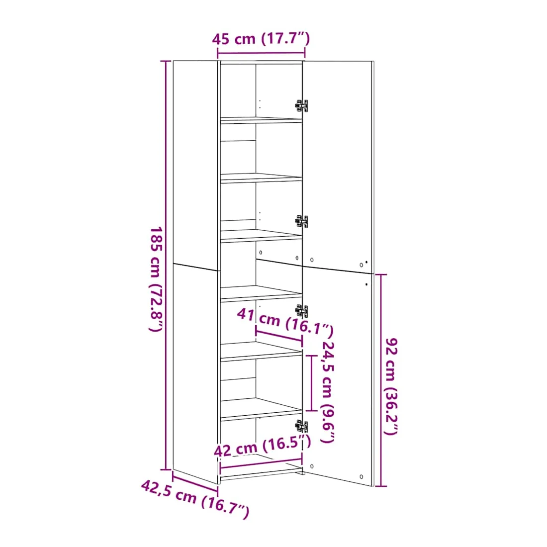 - 45 x 42.5 x 185 cm