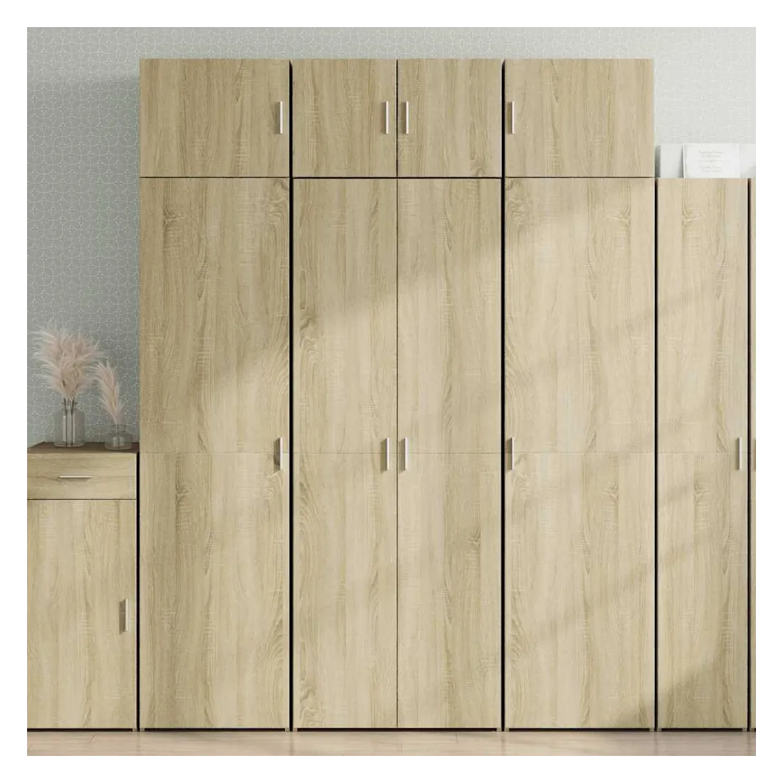 Vous cherchez un buffet haut de gamme stylé ? Ce buffet haut bien conçu ajoute un charme élégant à votre intérieur existant ! Matériau durable : le bois d'ingénierie est d'une qualité exceptionnelle avec une surface lisse et se caractérise également par sa solidité, sa stabilité et sa résistance à l'humidité.Facile à utiliser : l'armoire de rangement est livrée avec des poignées qui facilitent l'ouverture et la fermeture du meuble tout en ajoutant une beauté supplémentaire.Grand espace de rangement : cette armoire haute est dotée de compartiments et de portes, ce qui offre un grand espace de rangement pour garder vos différents articles essentiels quotidiens bien organisés et facilement accessibles.Facile à entretenir : grâce à sa surface lisse, le buffet se nettoie facilement à l'aide d'un chiffon humide et nécessite peu d'entretien.Multifonctionnel : ce buffet haut avec étagère est polyvalent et convient aux chambres, salons, couloirs, garage, etc., selon vos besoins. Attention :Pour éviter qu'il ne bascule, ce produit doit être utilisé avec le dispositif de fixation murale fourni. Bon à savoir :Les vis et les chevilles pour l'intérieur du mur ne sont pas incluses. Nous vous conseillons de trouver et d'utiliser des vis et des chevilles adaptées spécifiquement à vos murs. Si vous n'êtes pas sûr, vous pouvez consulter un professionnel. Veuillez lire et suivre chaque étape des instructions.