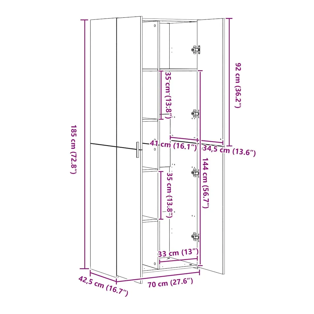 - 70 x 42.5 x 185 cm