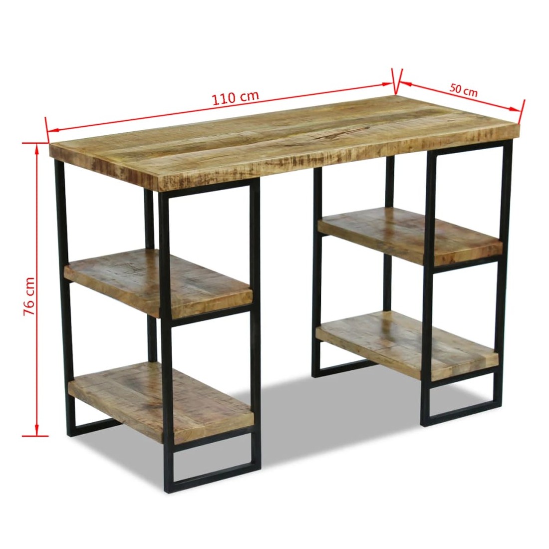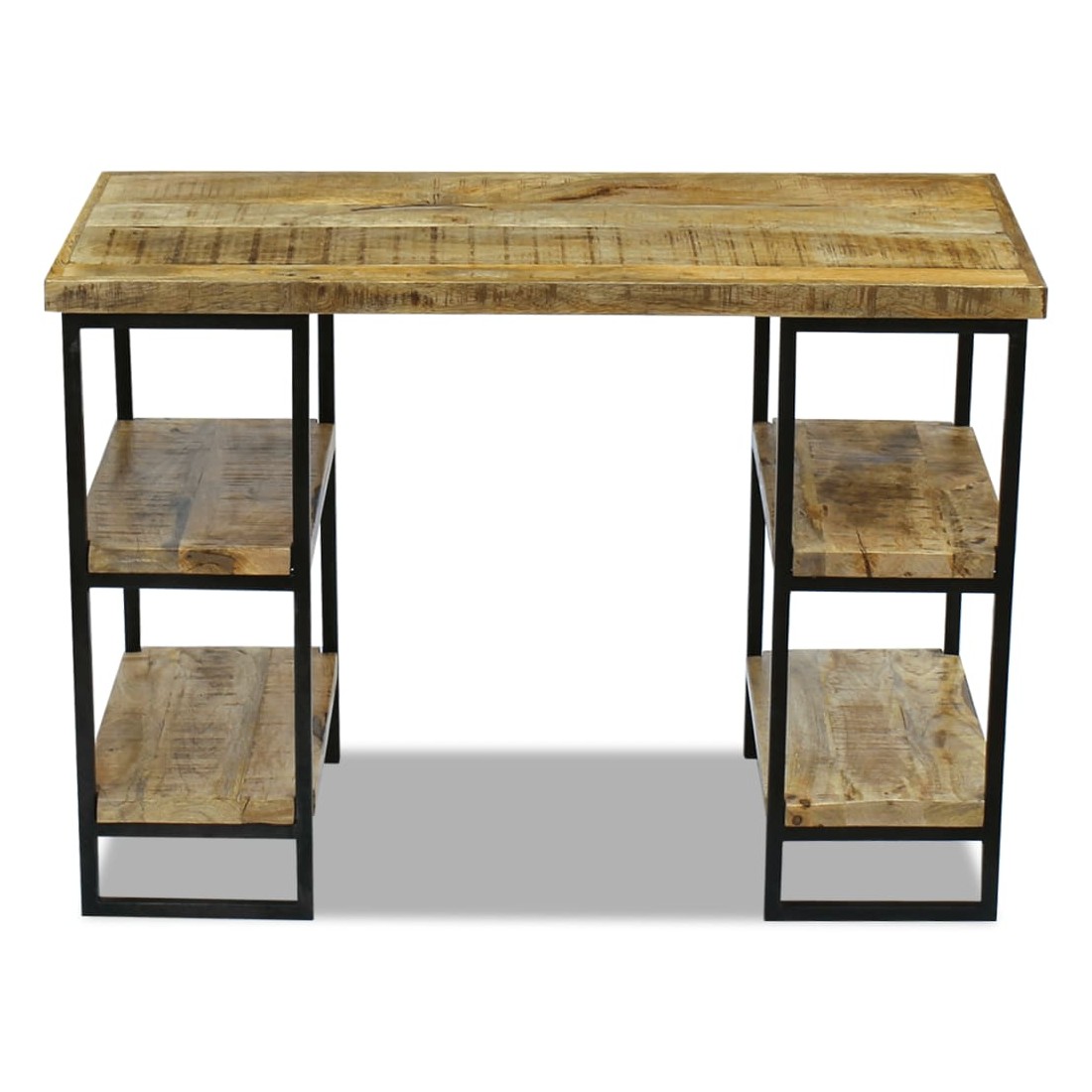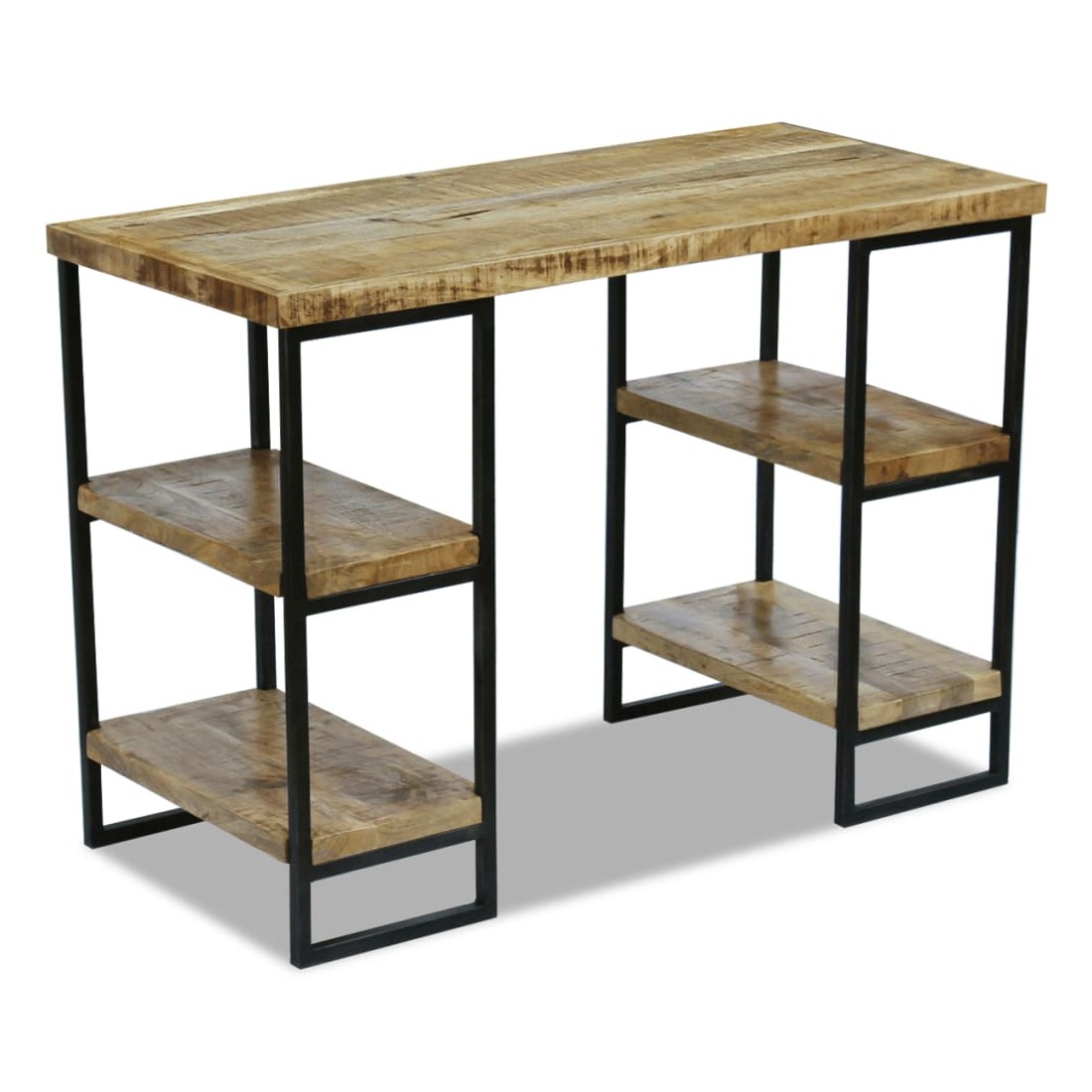 Ce bureau en bois au style industriel, fait en bois de manguier massif et avec une structure en acier robuste, sera un ajout indémodable à votre maison. Le dessus offre une surface stable et fiable sur laquelle vous pouvez poser de boissons, d'objets décoratifs ou un ordinateur. Il possède deux étagères de chaque côté, qui offrent un espace amplement suffisant pour ranger des objets de petite ou de moyenne taille tels que des clés, des carnets, des livres, etc. Ce bureau peut également être utilisé pour y poser un ordinateur, étudier, lire, etc puisqu'il s'adapte parfaitement à votre maison et y joue un rôle efficace.