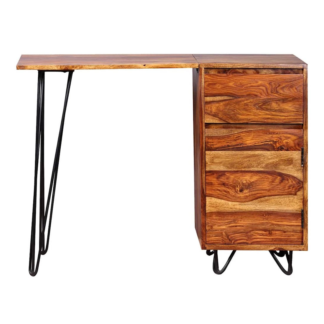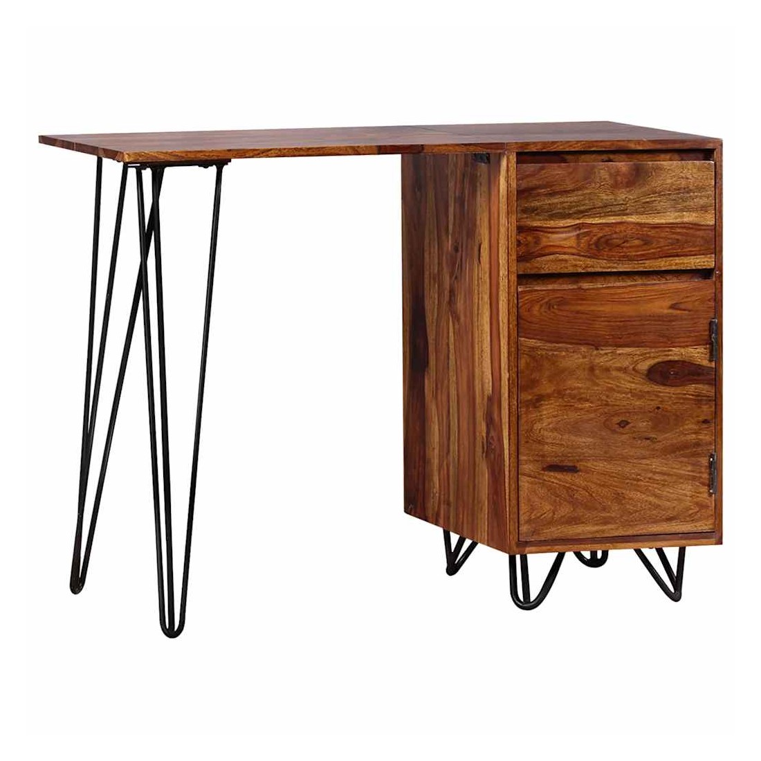 Cet élégant et pratique bureau sera un accessoire intemporel à votre décor intérieur. Il peut également servir de table console, de table d'appoint ou de table auxiliaire. Ce bureau a un design rétro frappant avec une touche industrielle. Il est fait de bois solide. Le bois, également connu sous le nom de palissandre ou de bois de rose est un bois dur tropical connu pour son grain riche. Ce bureau comprend un meuble et un tiroir, offrant suffisamment d'espace pour ranger et organiser vos dossiers, papiers, documents et autres fournitures de bureau. Le bureau offre également amplement d'espace pour vos objets décoratifs, tandis que les pieds robustes en acier contribuent à la construction robuste et ajoutent au style frais et industriel du bureau. Il est entièrement fait à la main et le