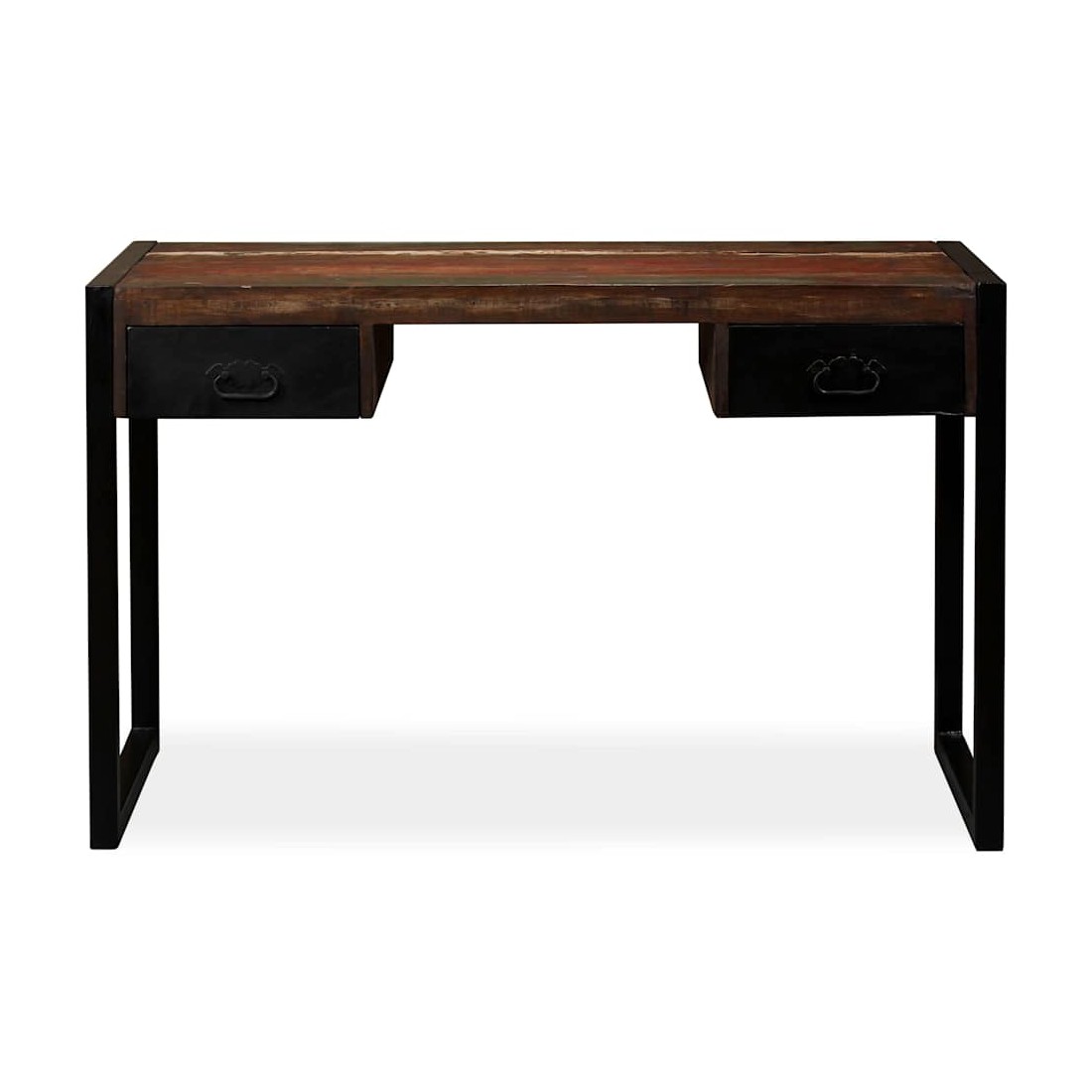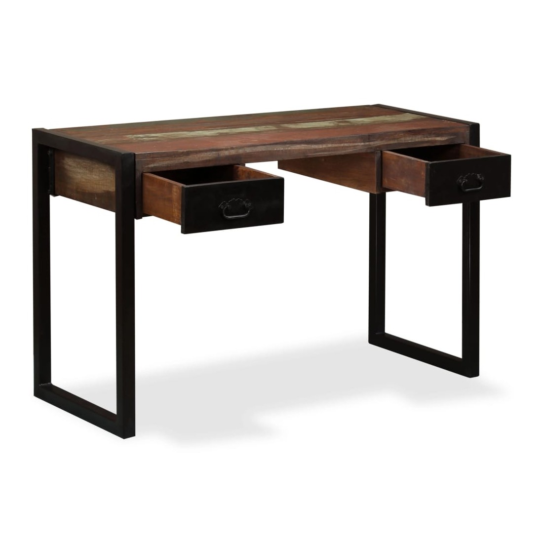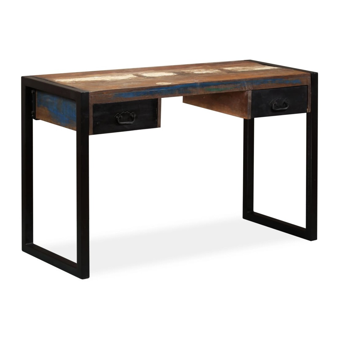 Ce bureau de style industriel en bois dégage un charme vintage et apportera une touche intemporelle à votre maison. Il a deux tiroirs, qui offrent suffisamment d'espace pour ranger des petits objets tels que des clés, un cahier et d'autres bibelots. Le bureau peut également servir de buffet ou de table console. La table d'ordinateur est faite de bois de récupération massif provenant de solives, de planchers et de poutres de soutien de vieux bâtiments démolis, et peut être composée de différents types de bois comme le pin, le teck, le hêtre, le chêne, le cèdre, le bois de manguier, l'acacia, etc. Cela signifie que le bois de récupération conserve les caractéristiques de ces différents types de bois. Le bois de récupération est déjà vieilli, patiné et séché, donc il ne rétrécit pas, ne se plie pas et n'a pas besoin d'une finition. Les belles fibres de bois rendent chaque meuble unique et légèrement différent du suivant. Les signes d'usure et la structure fibreuse visible confèrent à chaque table de travail une histoire et un aspect unique. Chaque étape du processus est réalisée avec le plus grand soin, que ce soit le ponçage, la peinture ou le laquage. L'assemblage est facile. Remarque importante : les couleurs varient d'une pièce à l'autre, rendant chacune de nos tables d'étude unique ; la livraison est aléatoire.