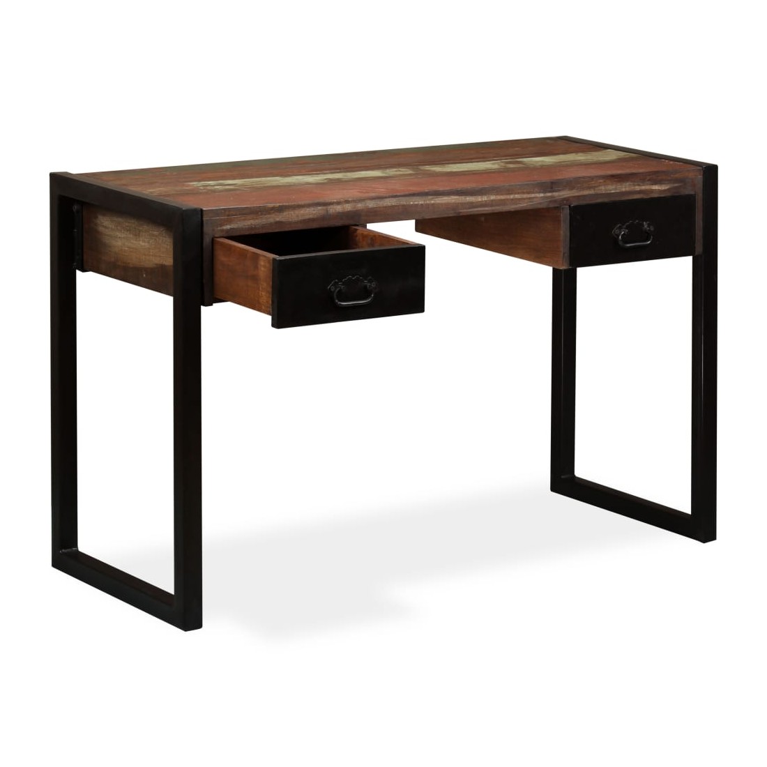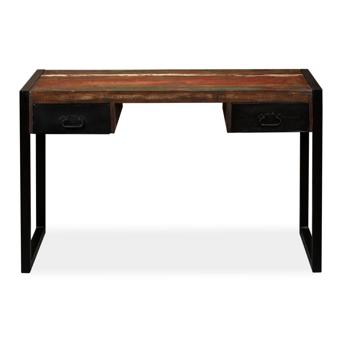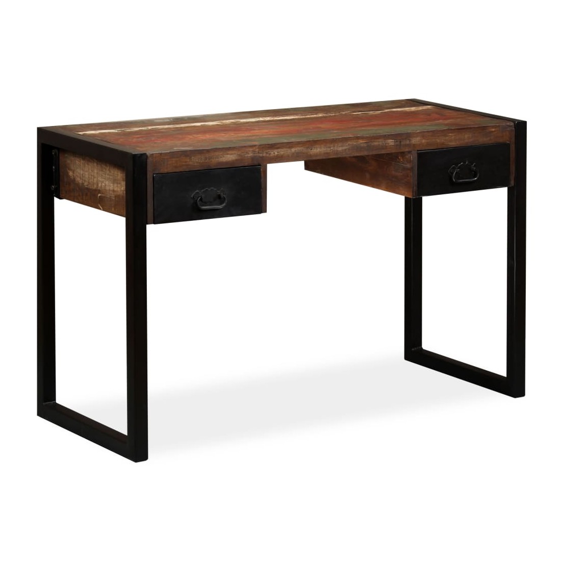 Ce bureau de style industriel en bois dégage un charme vintage et apportera une touche intemporelle à votre maison. Il a deux tiroirs, qui offrent suffisamment d'espace pour ranger des petits objets tels que des clés, un cahier et d'autres bibelots. Le bureau peut également servir de buffet ou de table console. La table d'ordinateur est faite de bois de récupération massif provenant de solives, de planchers et de poutres de soutien de vieux bâtiments démolis, et peut être composée de différents types de bois comme le pin, le teck, le hêtre, le chêne, le cèdre, le bois de manguier, l'acacia, etc. Cela signifie que le bois de récupération conserve les caractéristiques de ces différents types de bois. Le bois de récupération est déjà vieilli, patiné et séché, donc il ne rétrécit pas, ne se plie pas et n'a pas besoin d'une finition. Les belles fibres de bois rendent chaque meuble unique et légèrement différent du suivant. Les signes d'usure et la structure fibreuse visible confèrent à chaque table de travail une histoire et un aspect unique. Chaque étape du processus est réalisée avec le plus grand soin, que ce soit le ponçage, la peinture ou le laquage. L'assemblage est facile. Remarque importante : les couleurs varient d'une pièce à l'autre, rendant chacune de nos tables d'étude unique ; la livraison est aléatoire.