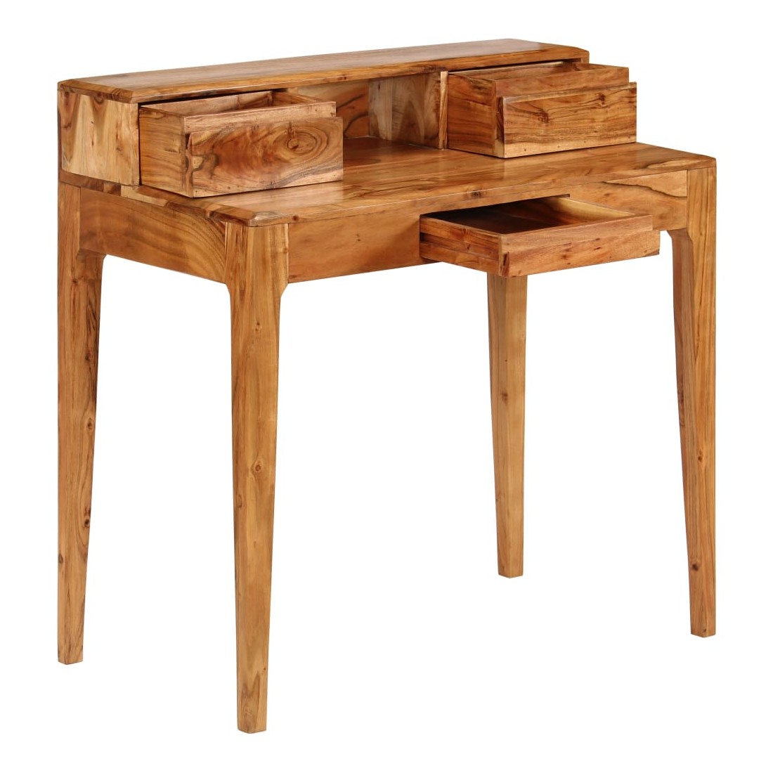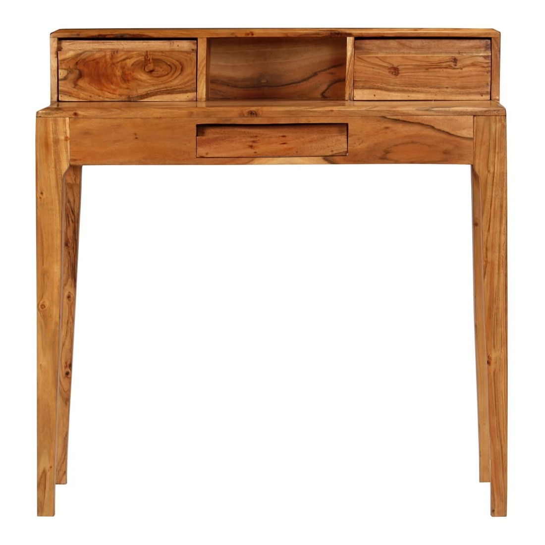 Ce bureau en bois dégage un charme rustique et sera un excellent supplément à votre intérieur. Le bureau est fait de bois d’acacia solide qui a reçu une belle finition par polissage, peinture et laquage pour lui donner un aspect raffiné. Cette table à écrire est entièrement faite à la main et les magnifiques grains de bois rendent chaque meuble unique et légèrement différent l'un de l'autre. Cette table d'ordinateur dispose de 3 tiroirs à papeterie et d’un compartiment, qui offrent un espace suffisant pour stocker et organiser vos fichiers, papiers, documents et autres effets personnels. L'assemblage est facile. Remarque importante : Les couleurs varient d'une pièce à une autre, rendant chacune d'elle unique ; la livraison est aléatoire.