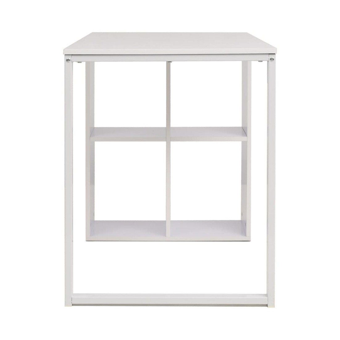 Notre table d'écriture moderne sera un excellent complément à votre bureau ou chambre d'étude. Ce bureau est composé d'un dessus en bois d'ingénierie et de pieds en acier et est stable, durable et nécessite peu d'entretien. Les 4 grands compartiments sur le côté de la table offrent suffisamment d'espace de rangement pour ranger vos fournitures d'étude comme des livres, des dossiers ou d'autres articles utiles à portée de main. Le bureau est facile à nettoyer avec un chiffon humide grâce à sa finition mélaminée. Le bureau est facile à assembler.