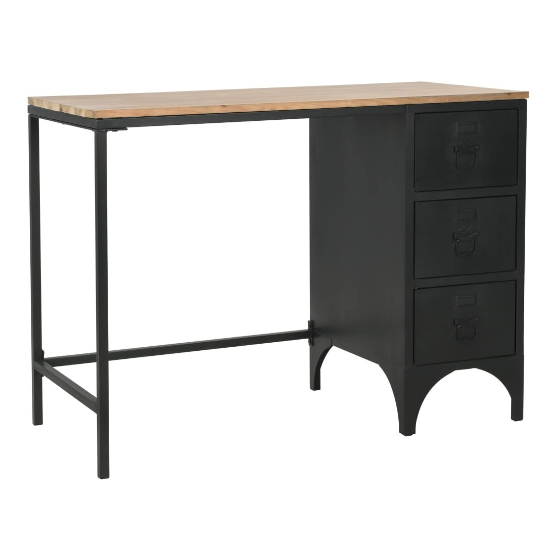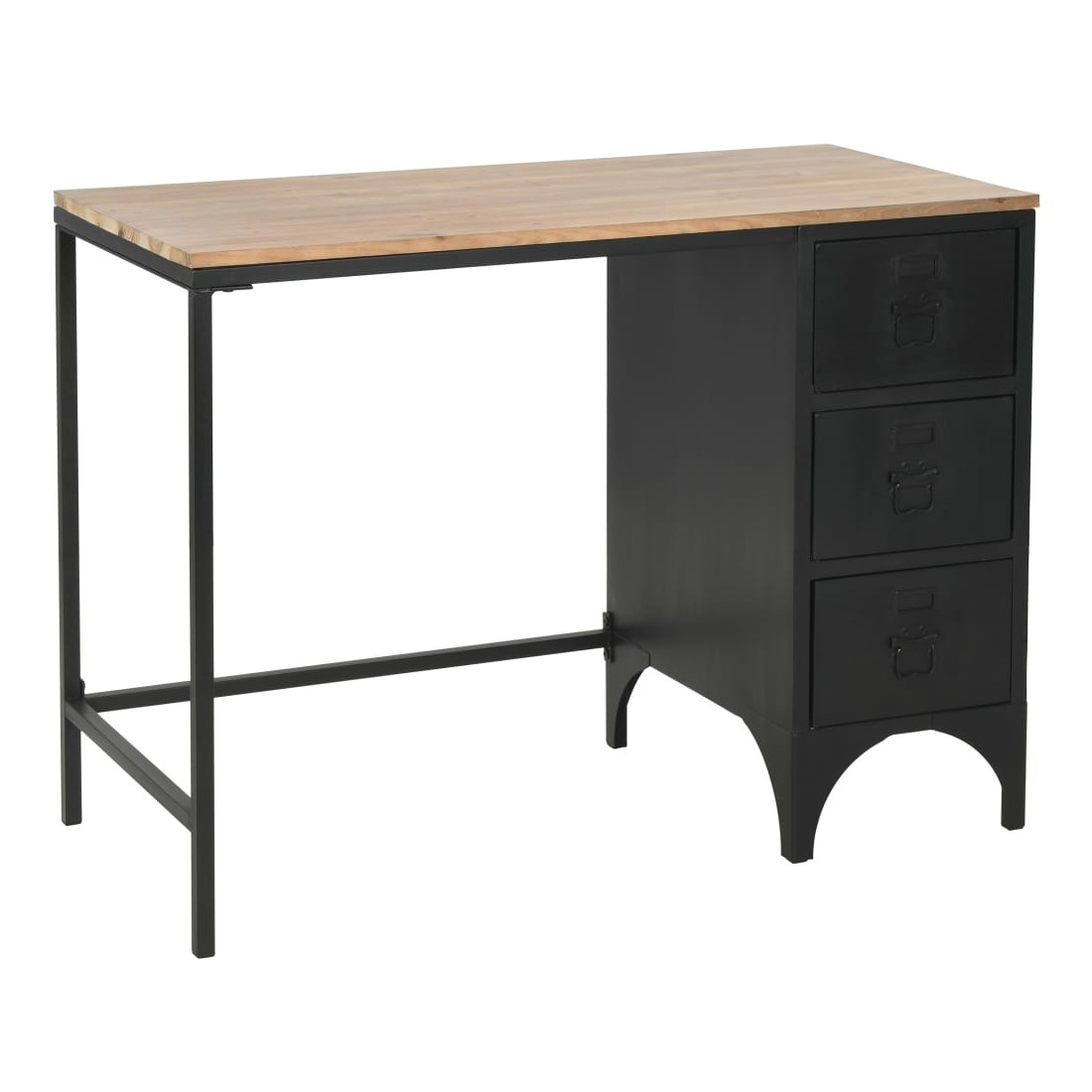 vidaXLCe bureau à piédestal unique sera un supplément indémodable à la décoration de votre bureau et chambre d'étude. Le bureau se compose d'un cadre en acier robuste et d'un dessus en bois de sapin massif. Il est extrêmement robuste et durable. Le bureau dispose de 3 tiroirs qui offrent suffisamment d’espace pour garder vos dossiers, papiers, documents et autres fournitures de bureau à portée de main et bien rangés. La conception du cadre en acier lui donne un aspect industriel. Le bureau est facile à assembler.