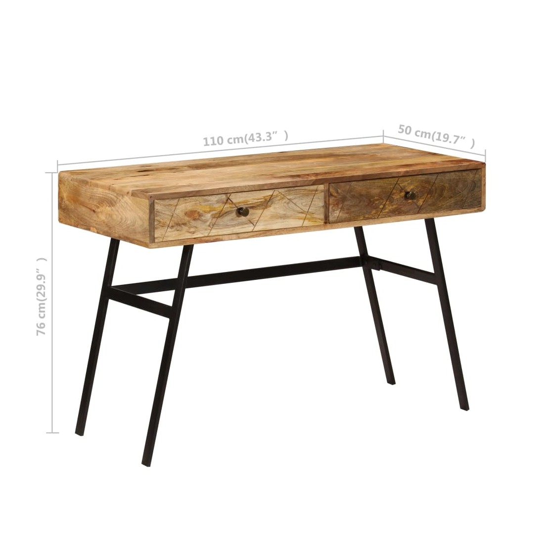 Bureau avec tiroirs Bois solide de manguier 110x50x76 cm