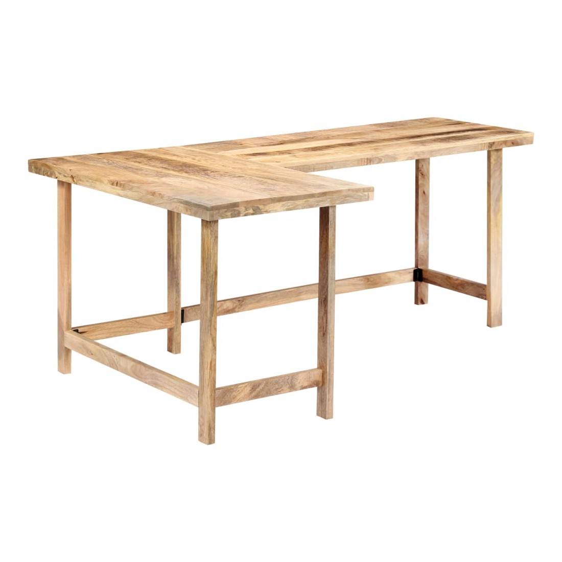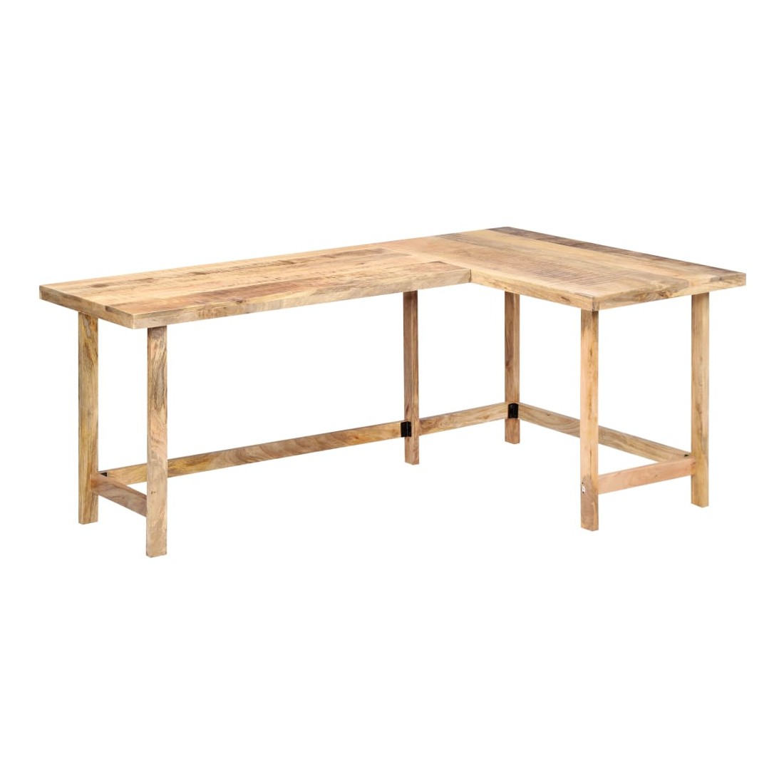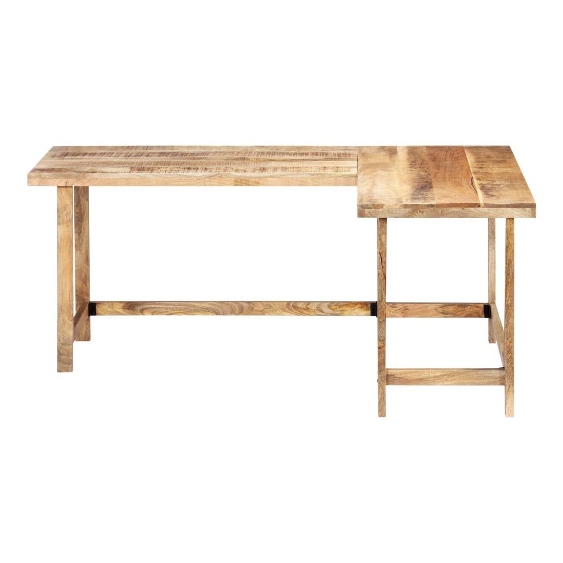 Ce bureau a un charme rustique et sera le point central de votre intérieur. Cette table d'écriture est en bois de manguier solide, un bois dur à grains denses. Le bois brut de manguier possède non seulement la force nécessaire pour supporter le poids, mais résiste également à l'usure du temps. L'artisanat exquis et les grains de bois gracieux rendent chaque meuble distinctif et légèrement différent l'un de l'autre. De plus, ce bureau d'étude se distingue par son design en L et peut être installé à droite ou à gauche. Remarque importante : les grains varient d'une pièce à l'autre, rendant chaque pièce unique ; la livraison est aléatoire.