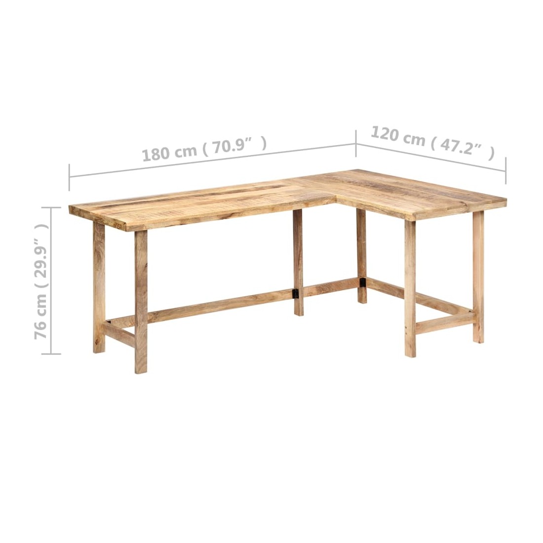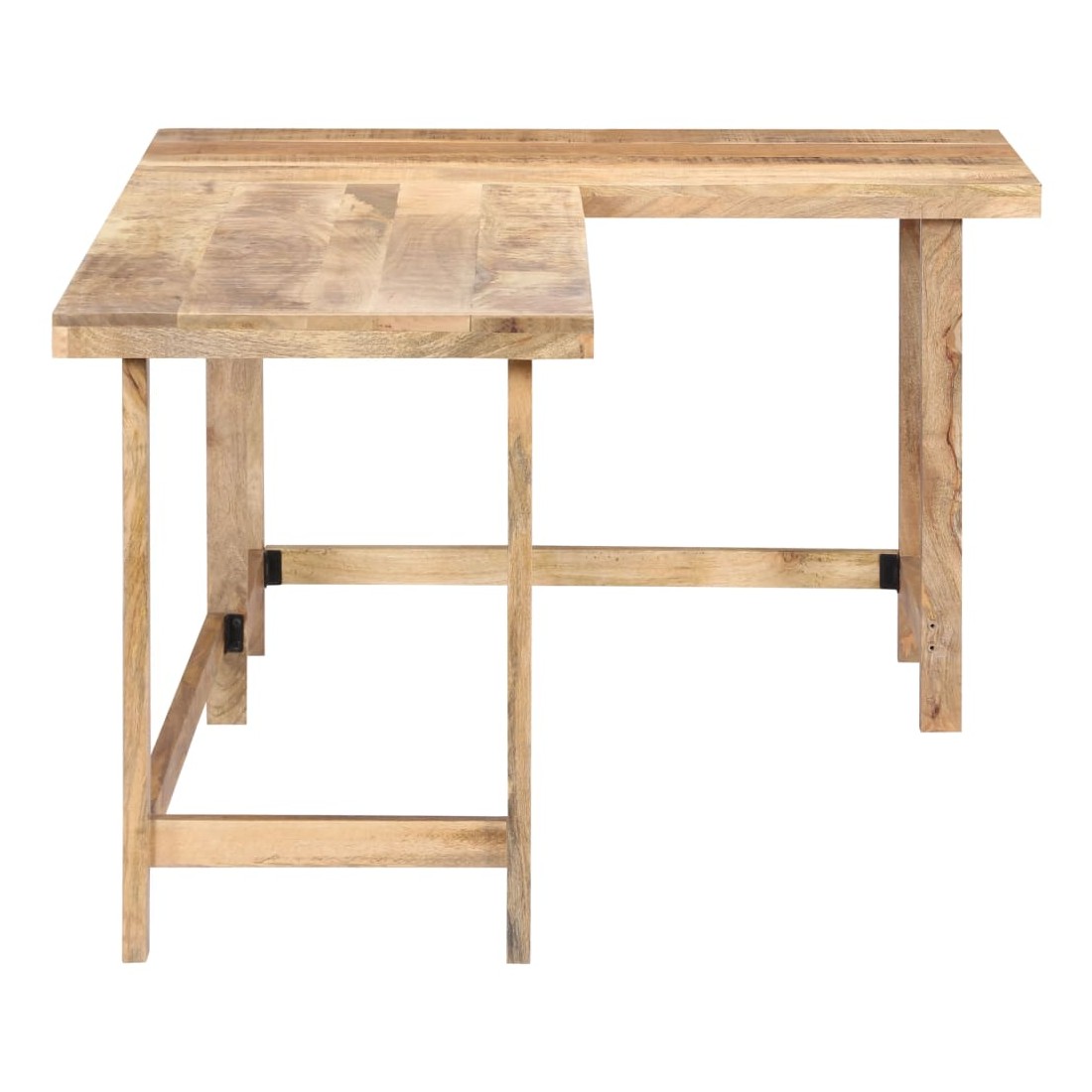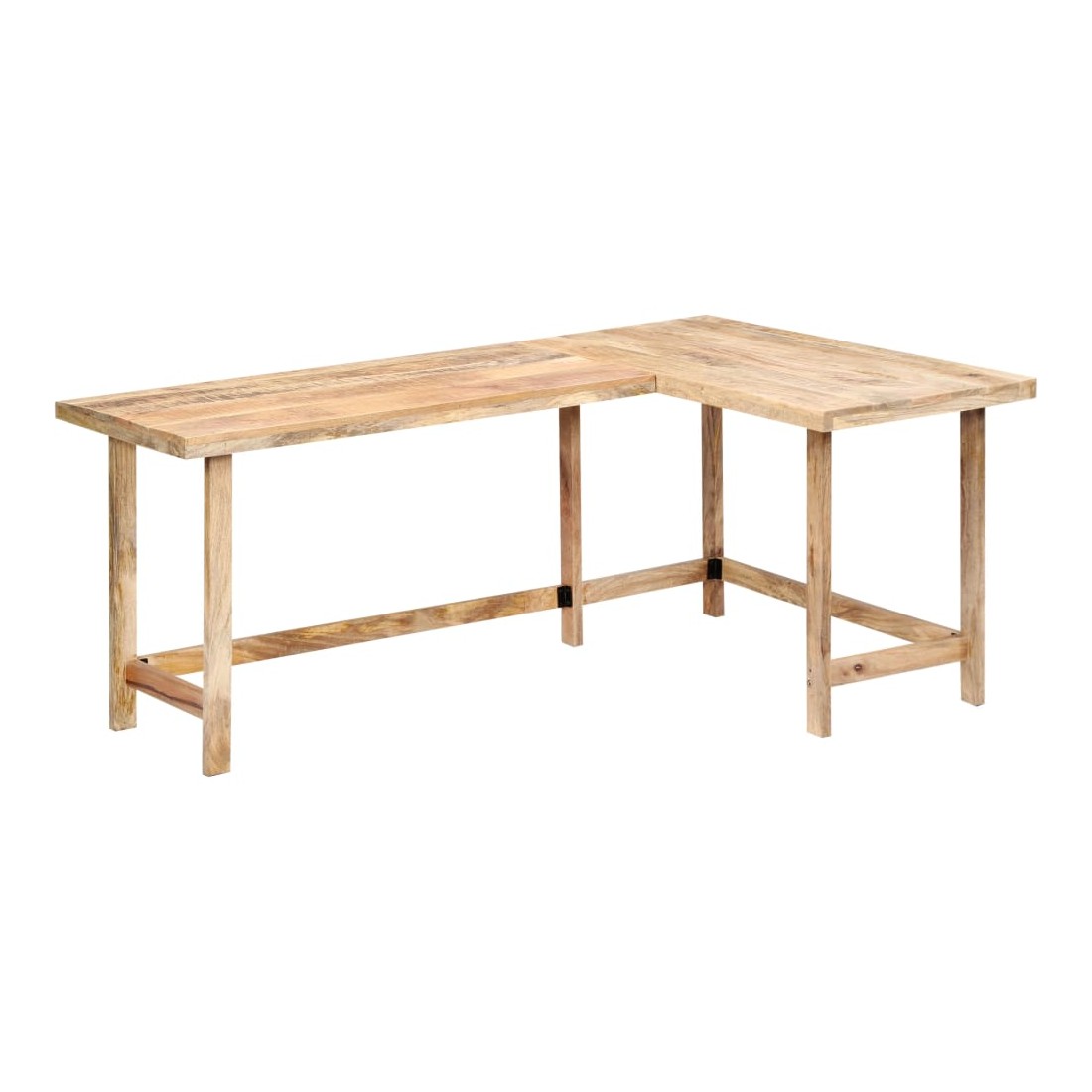 Ce bureau a un charme rustique et sera le point central de votre intérieur. Cette table d'écriture est en bois de manguier solide, un bois dur à grains denses. Le bois brut de manguier possède non seulement la force nécessaire pour supporter le poids, mais résiste également à l'usure du temps. L'artisanat exquis et les grains de bois gracieux rendent chaque meuble distinctif et légèrement différent l'un de l'autre. De plus, ce bureau d'étude se distingue par son design en L et peut être installé à droite ou à gauche. Remarque importante : les grains varient d'une pièce à l'autre, rendant chaque pièce unique ; la livraison est aléatoire.