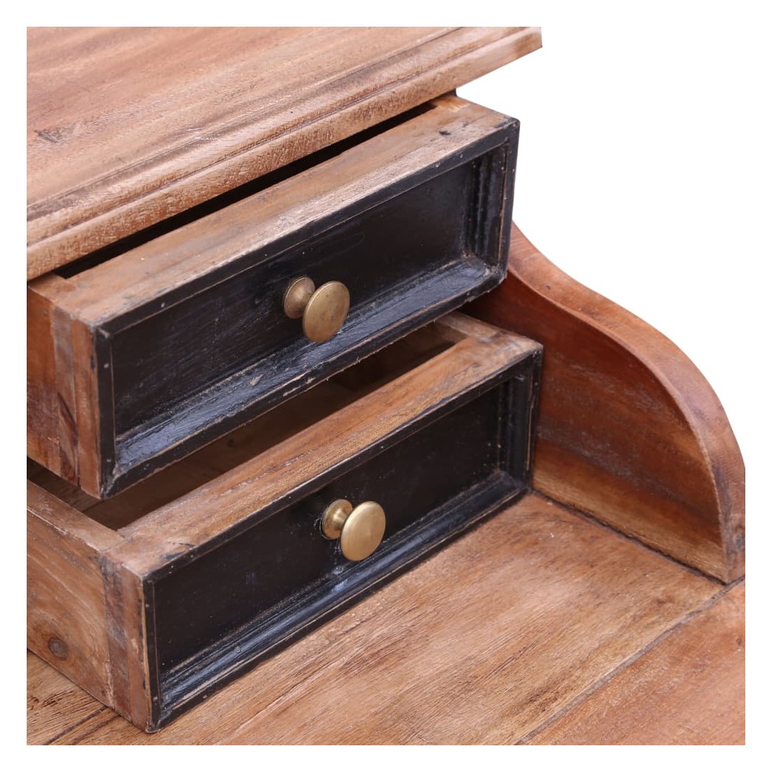 Ce bureau en bois dégage un charme rustique et sera un supplément élégant à n'importe quel décor. Fabriquée en bois massif d'acajou, ce bureau en bois massif est extrêmement durable et robuste. L'acajou est un bois dur tropical qui se distingue par sa beauté, sa durabilité et sa couleur. Un savoir-faire spécial a été utilisé pour donner à cet article un aspect vintage, chaleureux et authentique. Vous pouvez trouver des clous, des vis, des boulons remplis, des cavités ainsi que d'autres imperfections soulignant sa valeur authentique. Ces imperfections partagent une histoire chaleureuse de son passé et ne sont jamais intentionnellement créées. De plus, le bureau a 6 tiroirs et 1 compartiment avec suffisamment d'espace pour garder vos articles importants organisés et à portée de main. Ce produit est facile à assembler.
