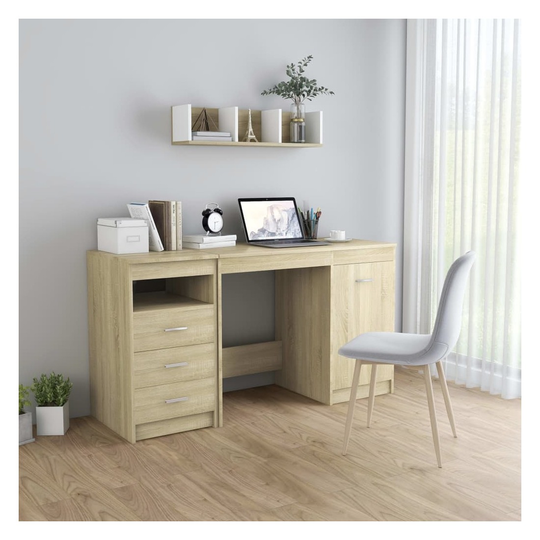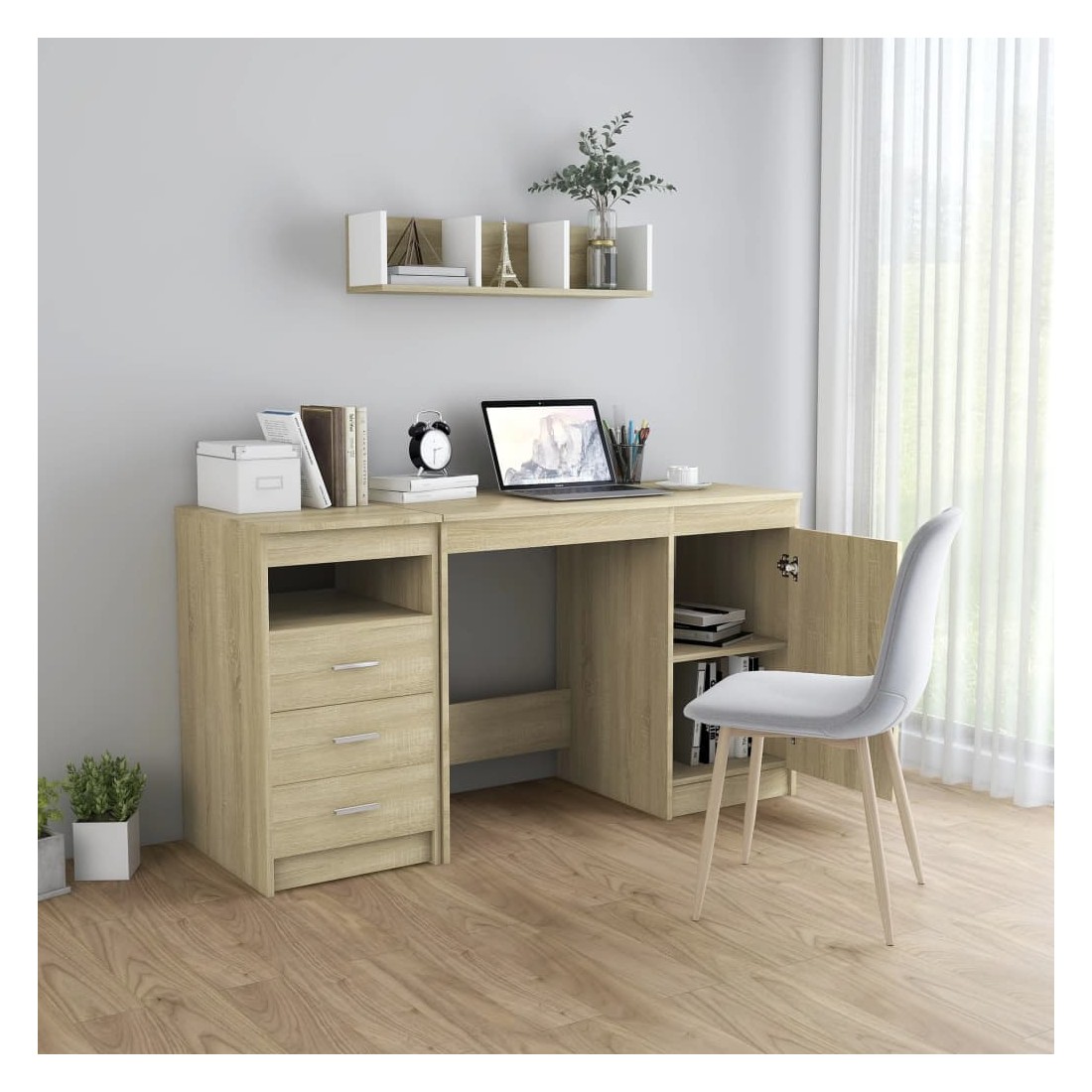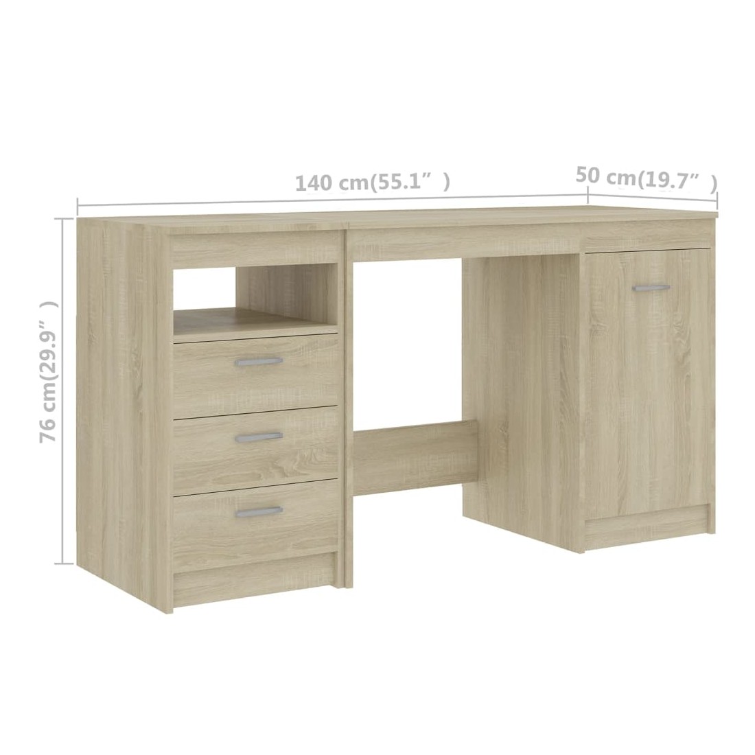 Notre bureau élégant et moderne vous offre un endroit pratique pour accomplir vos tâches quotidiennes tout en ajoutant une touche résolument moderne à votre bureau et à votre espace de travail. Le bureau, en bois d’ingénierie de qualité, garantit robustesse et durabilité. Et il offre également un grand espace de rangement avec 3 tiroirs et 1 porte. Ils sont idéaux pour stocker des livres, des magazines, des dossiers et autres articles essentiels. Le bureau est facile à nettoyer avec un chiffon humide. Le bureau est facile à assembler.
