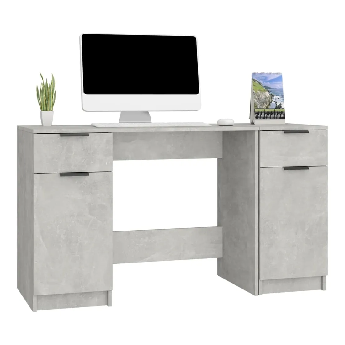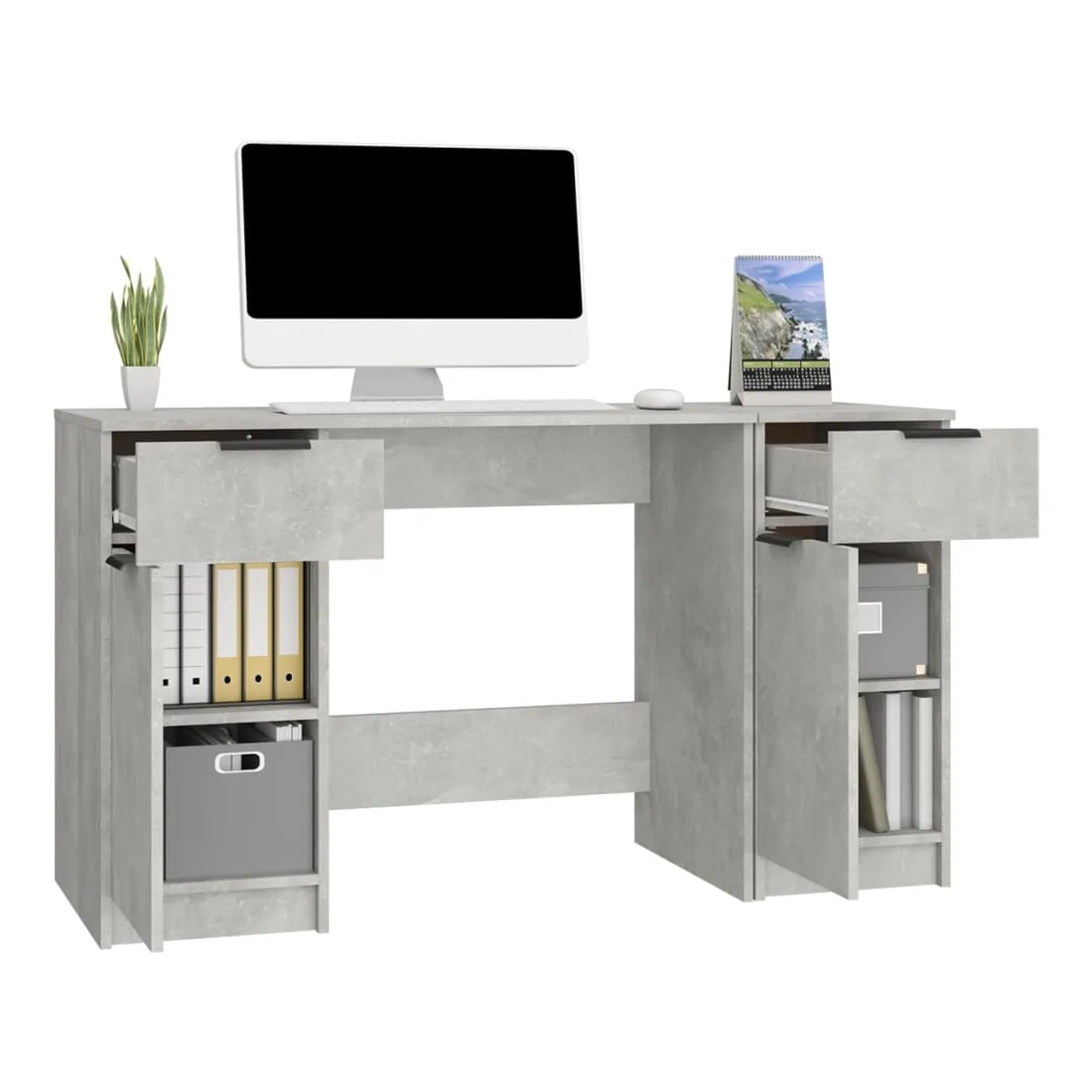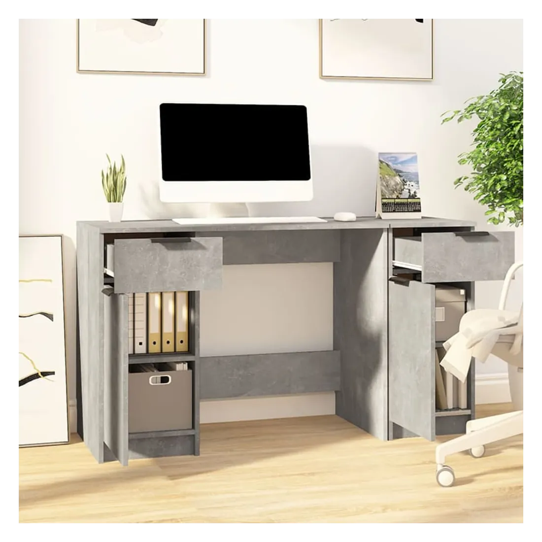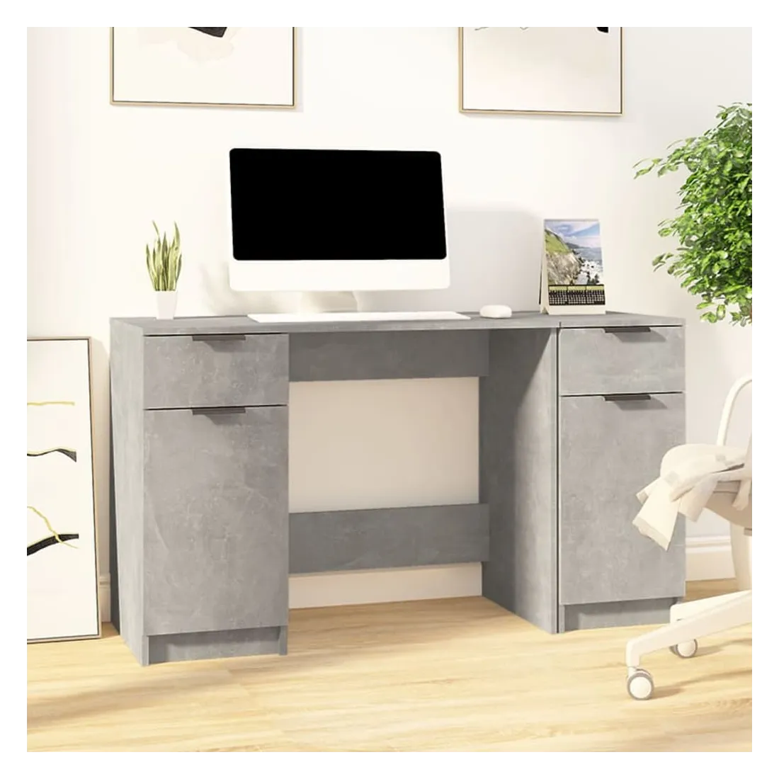 Bureau avec armoire latérale Gris béton Bois d'ingénierie