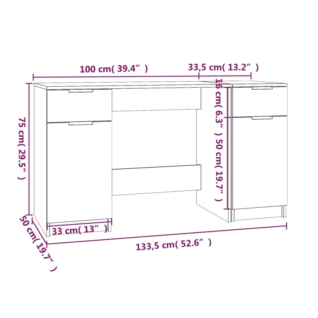 • Dimensions de l’armoire latérale : 33,5 x 50 x 75 cm (L x l x H)