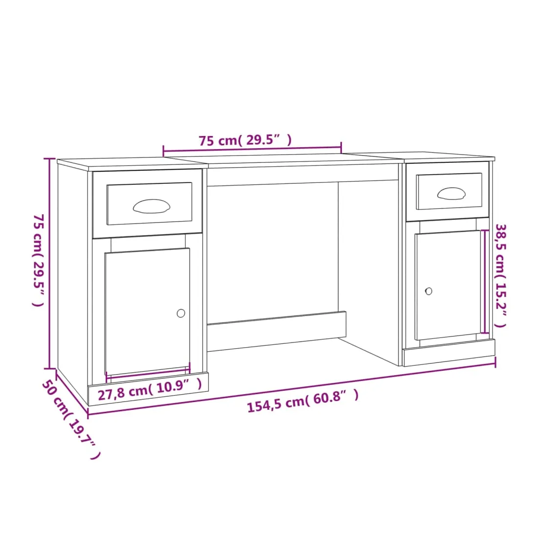 - Dimensions totales : 154,5 x 50 x 75 cm (L x l x H)