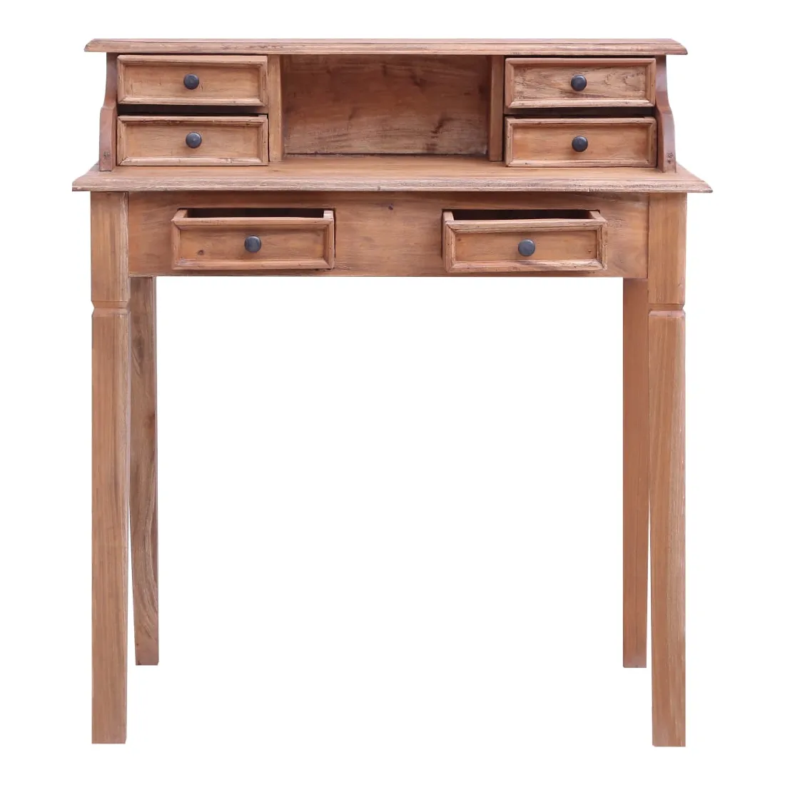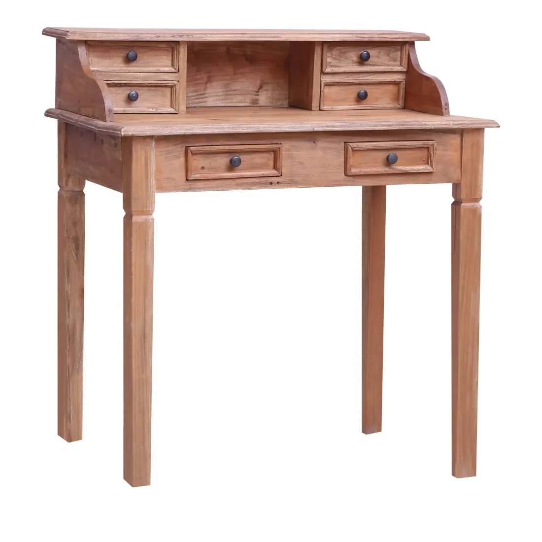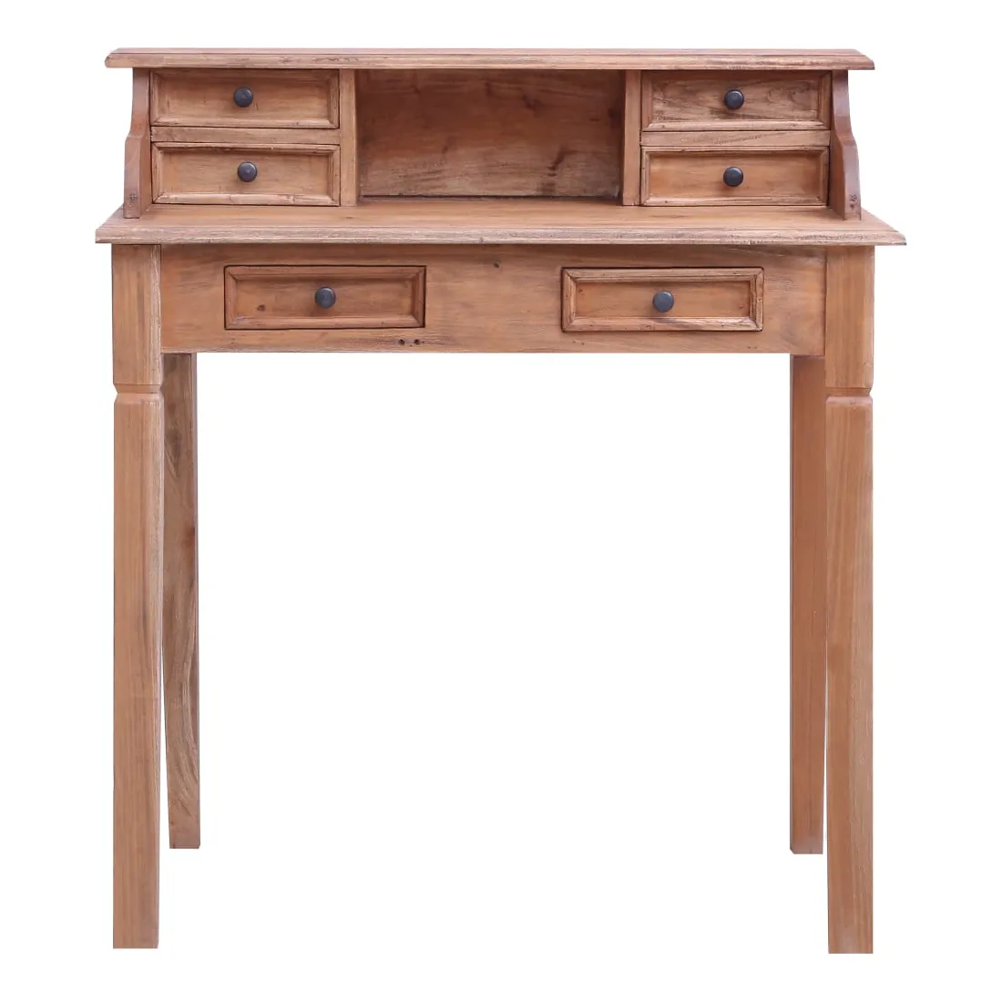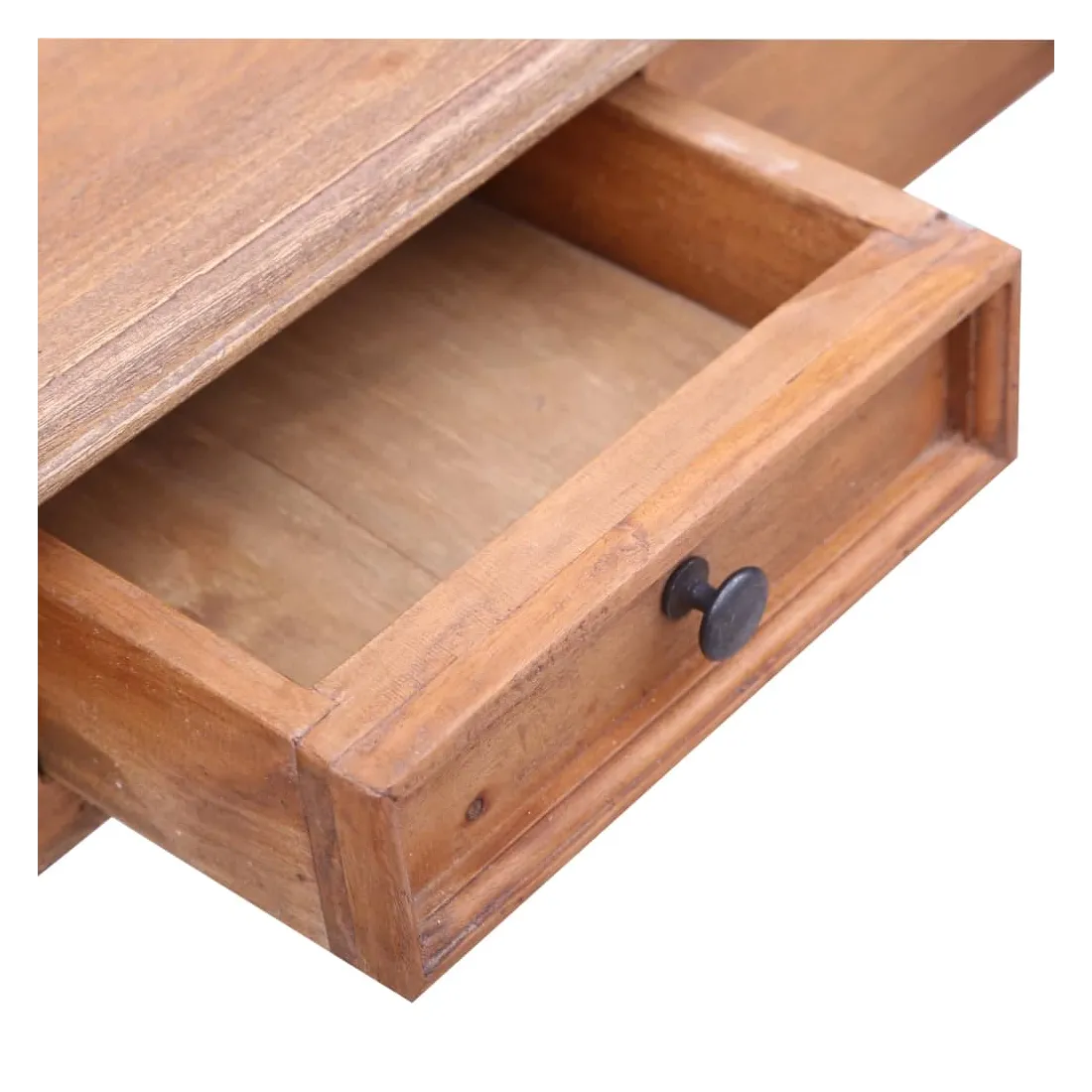 Ce bureau en bois dégage un charme rustique et sera un supplément élégant à n'importe quel décor. Fabriquée en bois massif d'acajou, ce bureau en bois massif est extrêmement durable et robuste. L'acajou est un bois dur tropical qui se distingue par sa beauté, sa durabilité et sa couleur. Un savoir-faire spécial a été utilisé pour donner à cet article un aspect vintage, chaleureux et authentique. Ces imperfections partagent une histoire chaleureuse de son passé et ne sont jamais intentionnellement créées. De plus, le bureau a 6 tiroirs et 1 compartiment avec suffisamment d'espace pour garder vos articles importants organisés et à portée de main. Ce produit est facile à assembler.