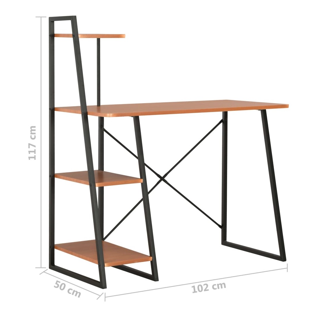 Bureau avec étagère Noir et marron 102x50x117 cm