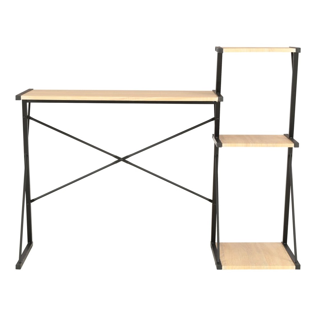 Ce bureau moderne est combiné avec une étagère, ce qui en fait un meuble très pratique et polyvalent pour une utilisation à la maison ou au bureau. Ce bureau unique et élégant contient des étagères spacieuses et robustes. Le grand bureau est idéal pour placer votre ordinateur et vos accessoires, ce qui en fait un poste de travail idéal pour la paperasse, le travail de bureau et les études, tandis que les étagères intégrées offrent un espace de stockage et d'affichage supplémentaire pour vos livres, dossiers, documents ou cadres photo, objets décoratifs, plantes en pot, etc. Ce meuble de bureau peu encombrant est fait de matériaux haut de gamme et sa construction en acier enduit de poudre le rend très robuste, stable et durable.