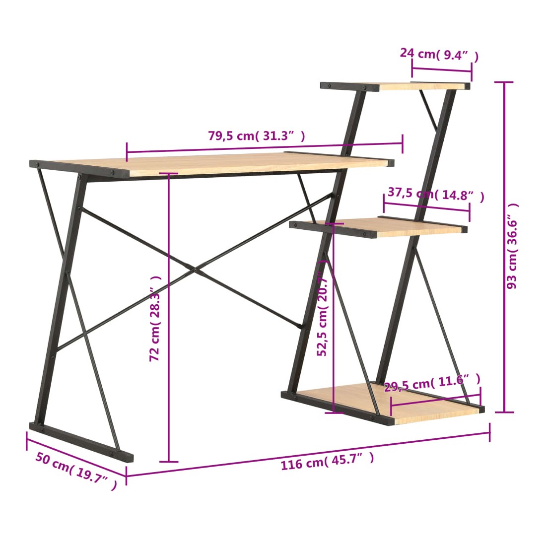 - Dimensions totales : 116 x 50 x 93 cm (L x I x H)