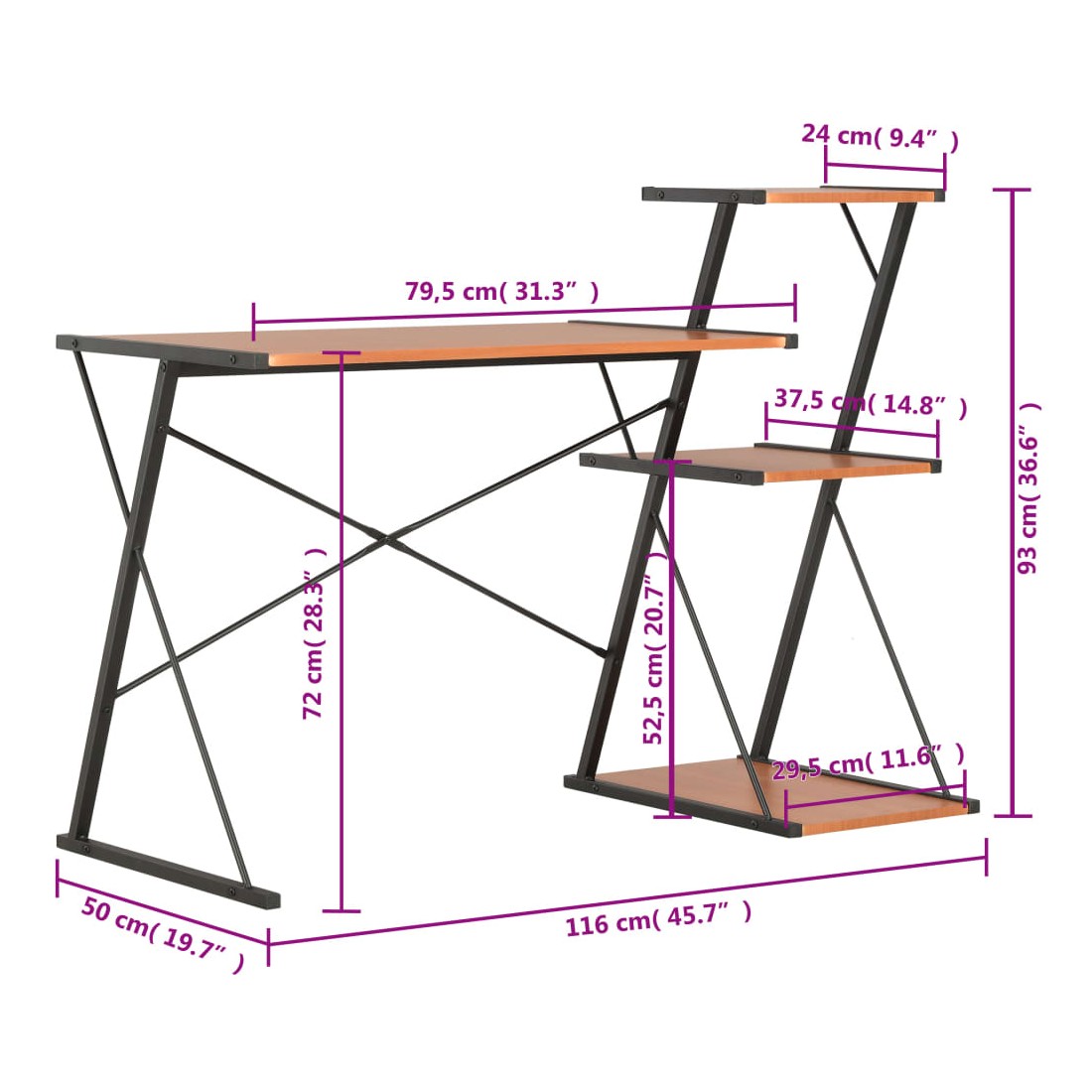 Bureau avec étagère Noir et marron 116x50x93 cm