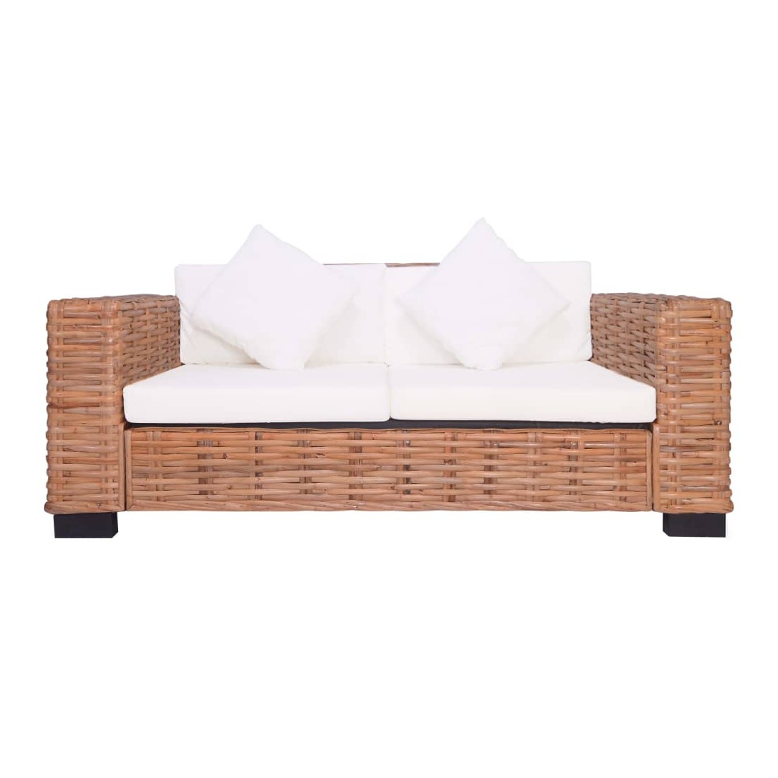 Ce canapé en rotin associe style et fonctionnalité et sera un excellent supplément à votre jardin ou patio. Grâce au matériau de rotin naturel, le canapé est facile à nettoyer, résistant à l'usure et adapté à un usage extérieur. Il est doté d'un cadre en bois robuste et durable. Les coussins et les oreillers épais d'assise et de dossier sont très confortables et lavables grâce à leurs housses amovibles. De plus, les accoudoirs larges ajoutent à votre confort d'assise. Le canapé étant en rotin naturel, il doit être protégé des intempéries. La livraison comprend un canapé à 2 places, deux coussins de siège, deux coussins de dossier et deux oreillers.