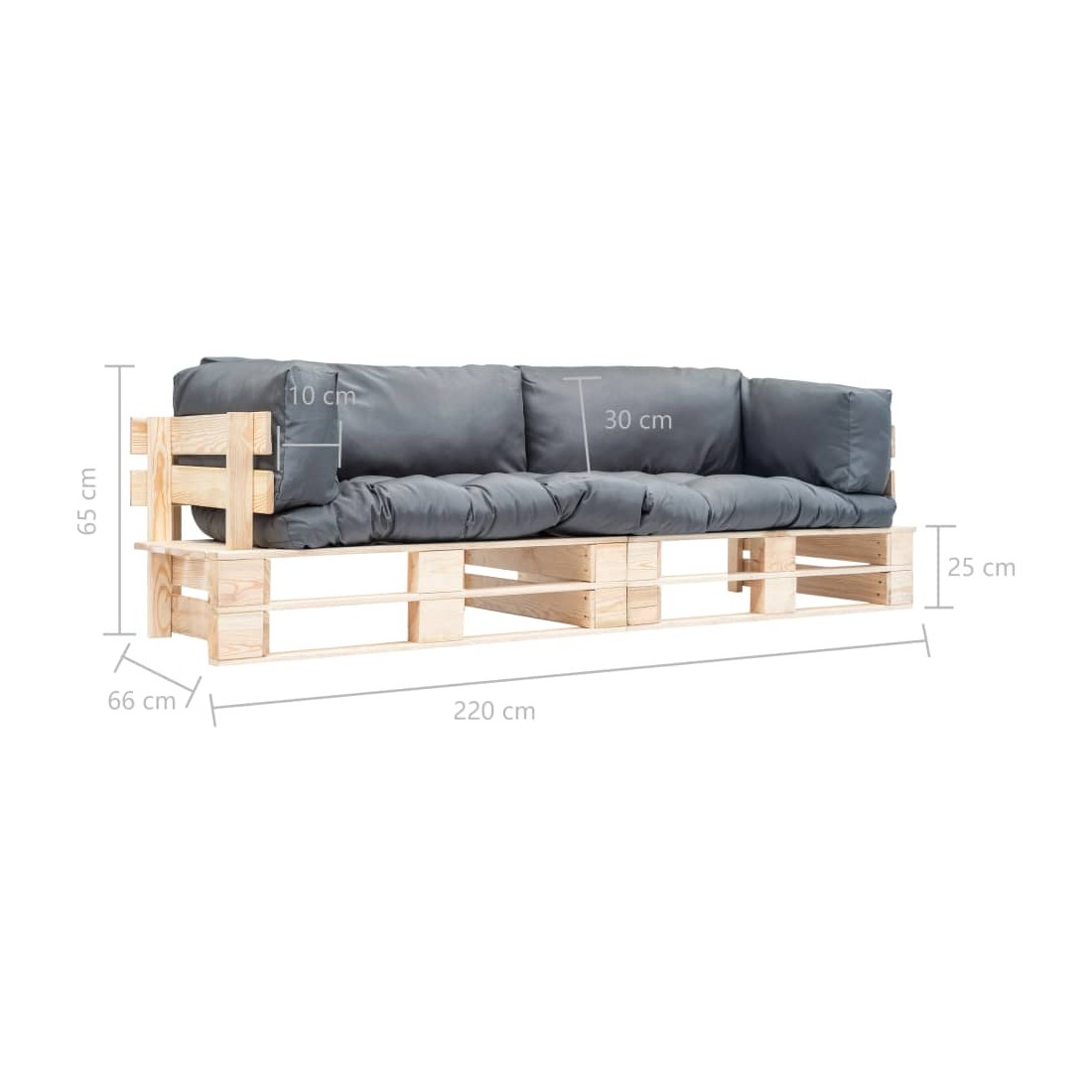 Notre ensemble de canapé palette de jardin sera un choix idéal pour vous détendre, profiter du beau temps, faire une sieste ou discuter en famille ou entre amis. Avec son design intemporel de palette, cet ensemble de meubles en bois ajoutera une touche de charme rustique à votre terrasse, jardin ou salon. Fait en pin imprégné, l'ensemble de canapés de jardin est durable, et résistant aux intempéries. Cet ensemble de canapés de patio a une fabrication solide et nécessite peu d'entretien. Livré avec des coussins moelleux et bien rembourrés, notre ensemble de canapés vous apportera le plus grand confort. La livraison inclut deux canapés à 2 places avec coussins de dossier et de siège amovibles. Le mobilier de jardin est facile à assembler. Veuillez noter que le bois est un produit naturel