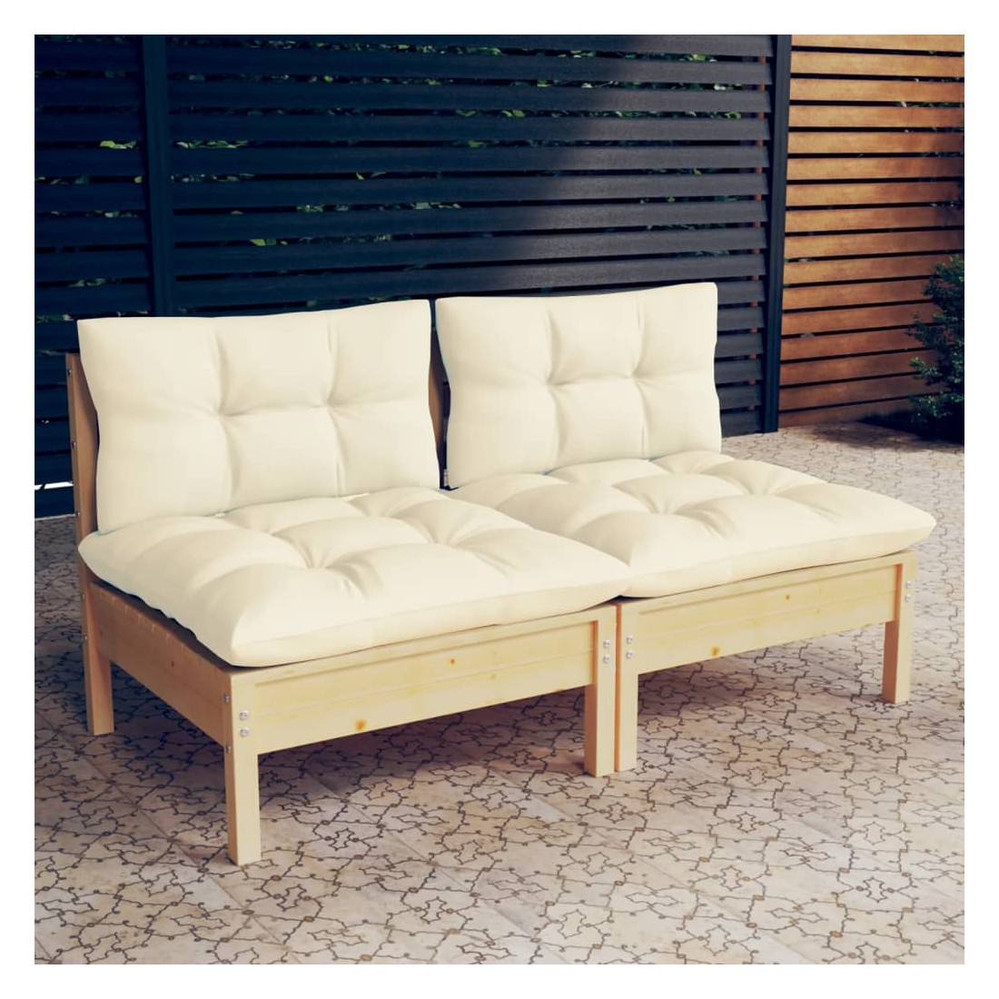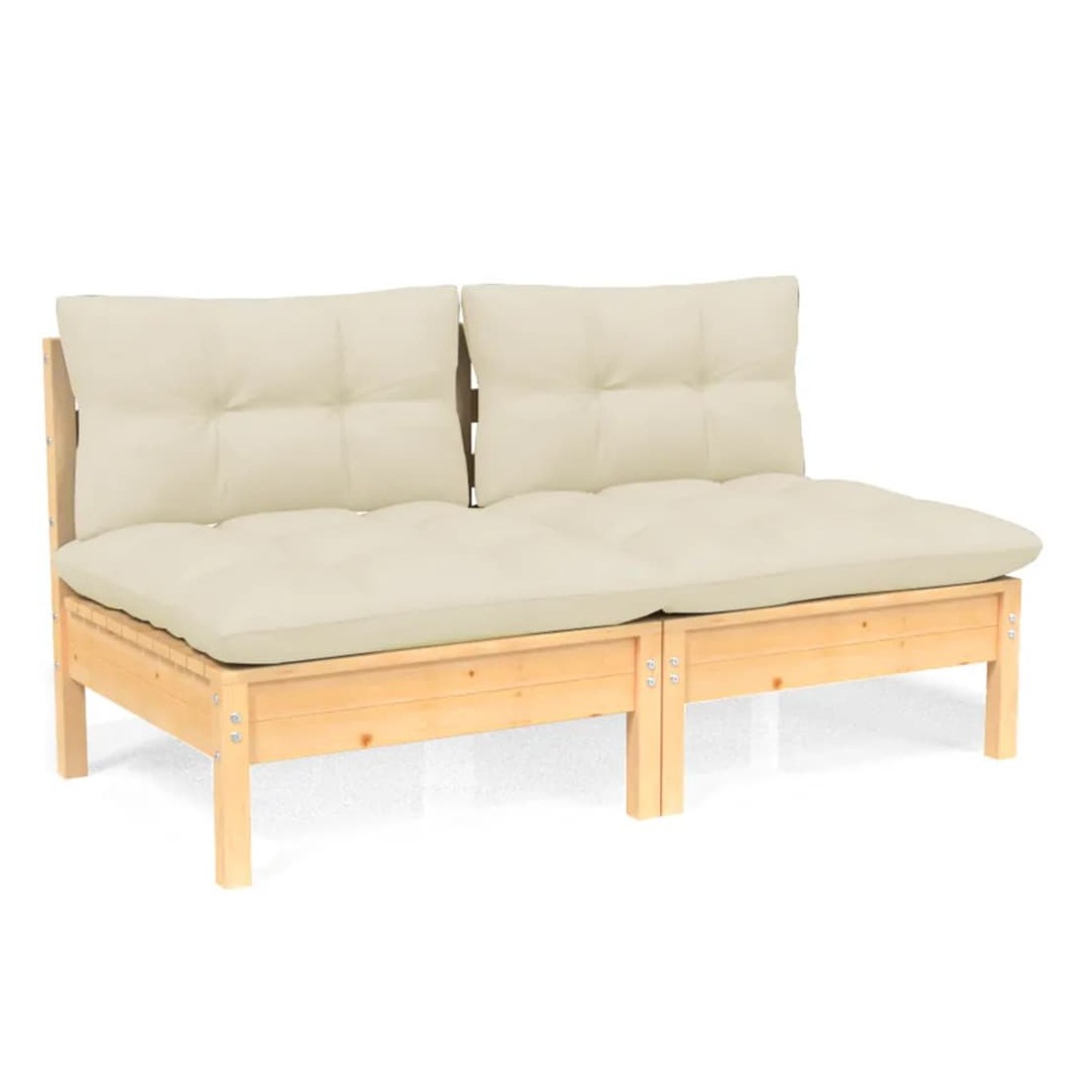 Canapé 2 places de jardin et coussins crème Bois de pin solide