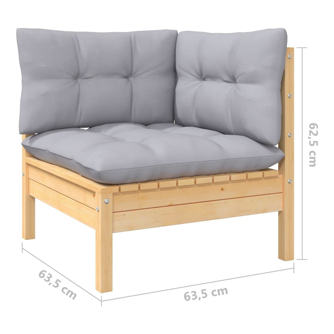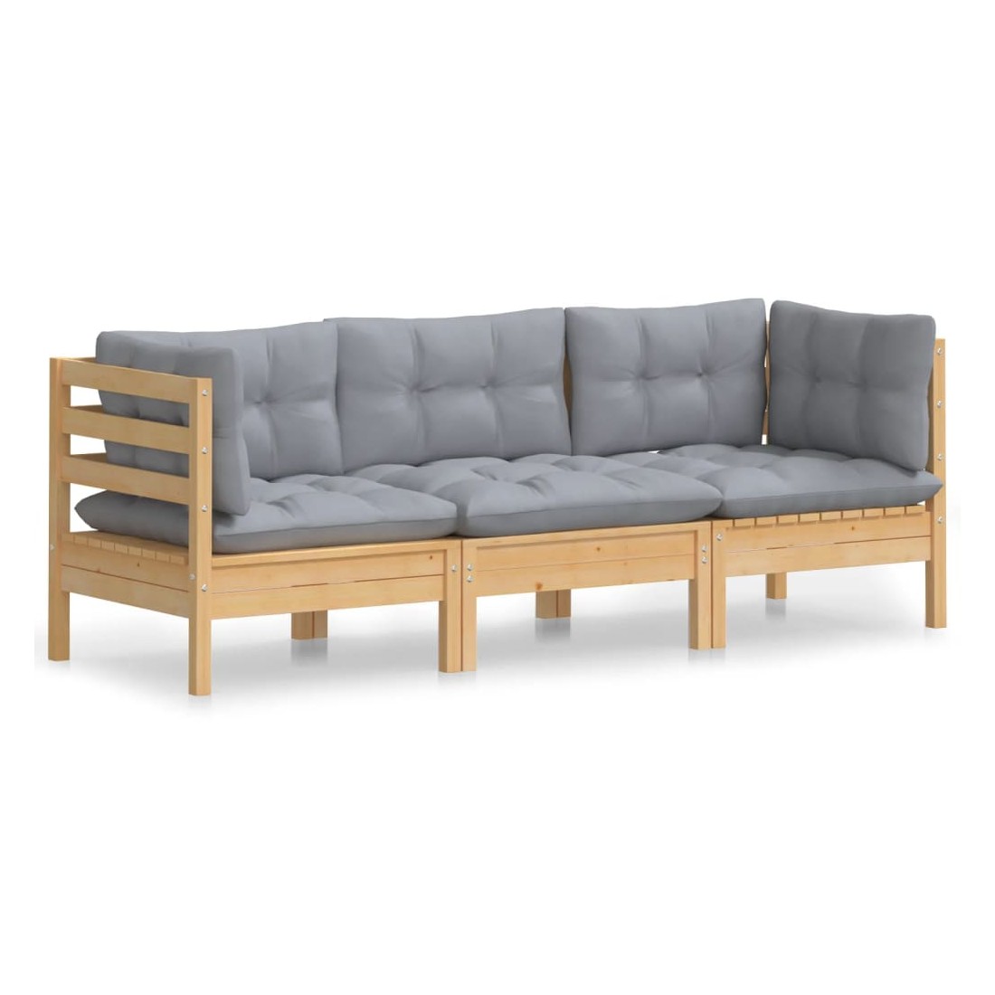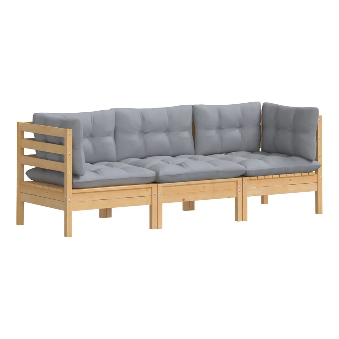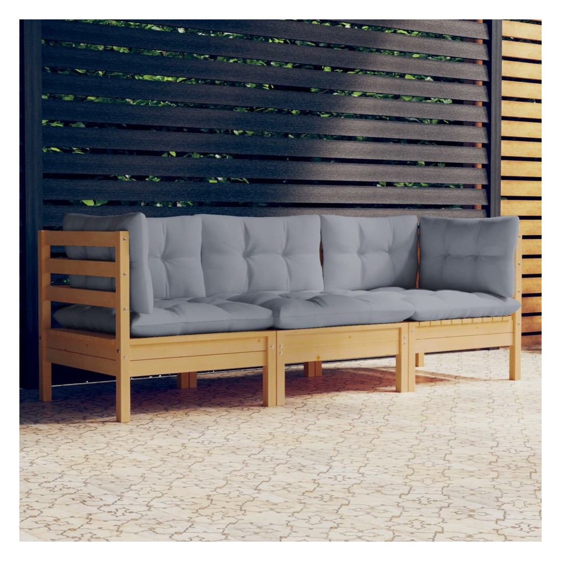 Canapé 3 places de jardin et coussins gris Bois de pin solide