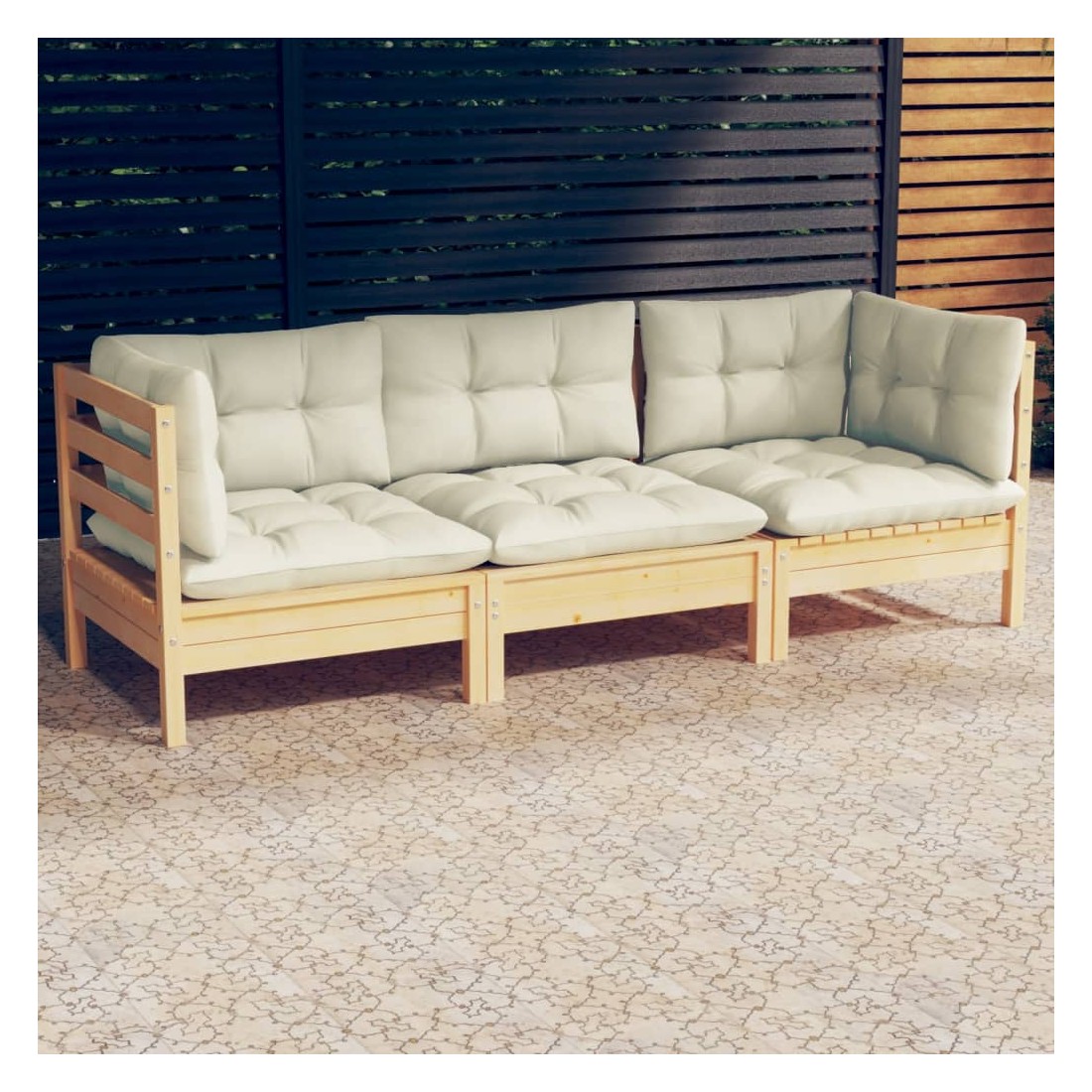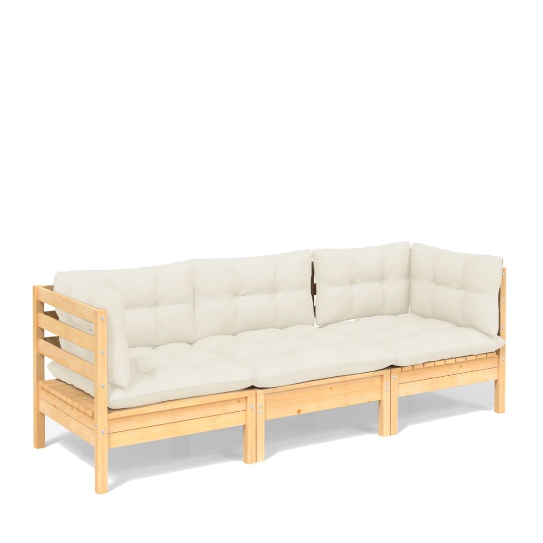 Canapé 3 places de jardin et coussins crème Bois de pin solide