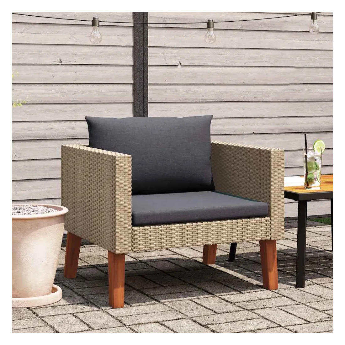 Canapé simple de jardin avec coussins Résine tressée Beige