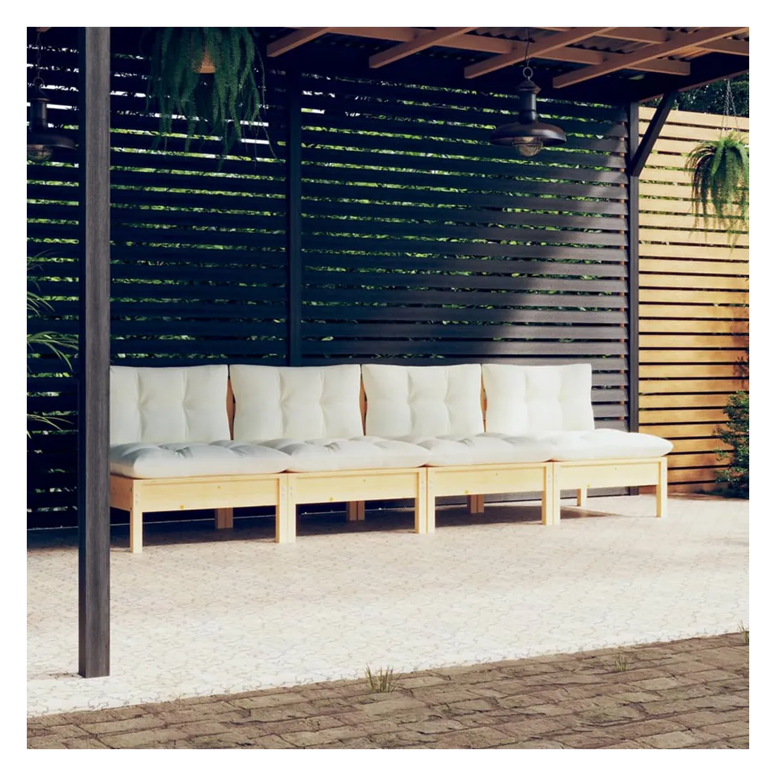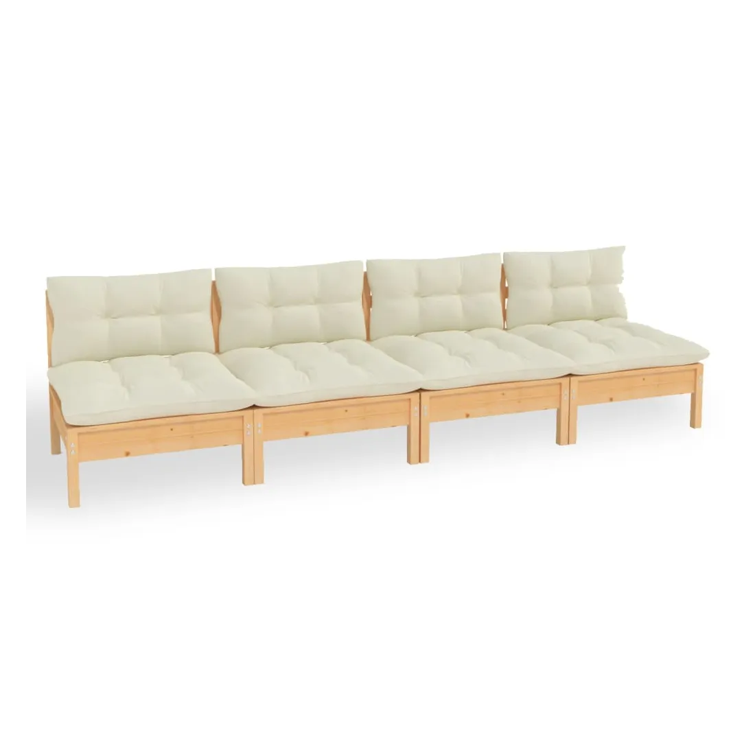 Le canapé 4 places de jardin est un excellent choix pour vous détendre et profiter du beau temps, faire une sieste ou discuter avec votre famille ou vos amis. Le canapé de patio est fabriqué en bois de pin massif, ce qui le rend robuste et stable. Les coussins ajoutent un confort supplémentaire. De plus, ce canapé d'extérieur présente également une conception modulaire, ce qui le rend complètement flexible et facile à déplacer pour s'adapter à n'importe quelle configuration. Vous pouvez le combiner avec d'autres segments modulaires disponibles dans le menu déroulant pour créer vos propres configurations de salon de jardin personnelles ! Remarque: Afin de prolonger la durée de vie de vos meubles d'extérieur, nous vous recommandons de les nettoyer régulièrement et de ne pas les laisser à l'extérieur sans protection inutilement.Nettoyage: Utiliser une solution savonneuse douceStockage: Si possible, stockez dans un endroit frais et sec à l'intérieur. Si le produit est stocké à l'extérieur, protégez-le avec une housse imperméable. Essuyez et séchez l'excès d'eau ou de neige des surfaces planes après la pluie ou une chute de neige. Permettez une circulation d'air suffisante afin d'éviter les dommages liés à l'humidité.