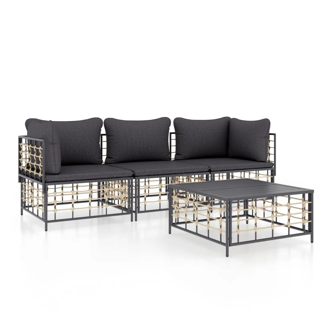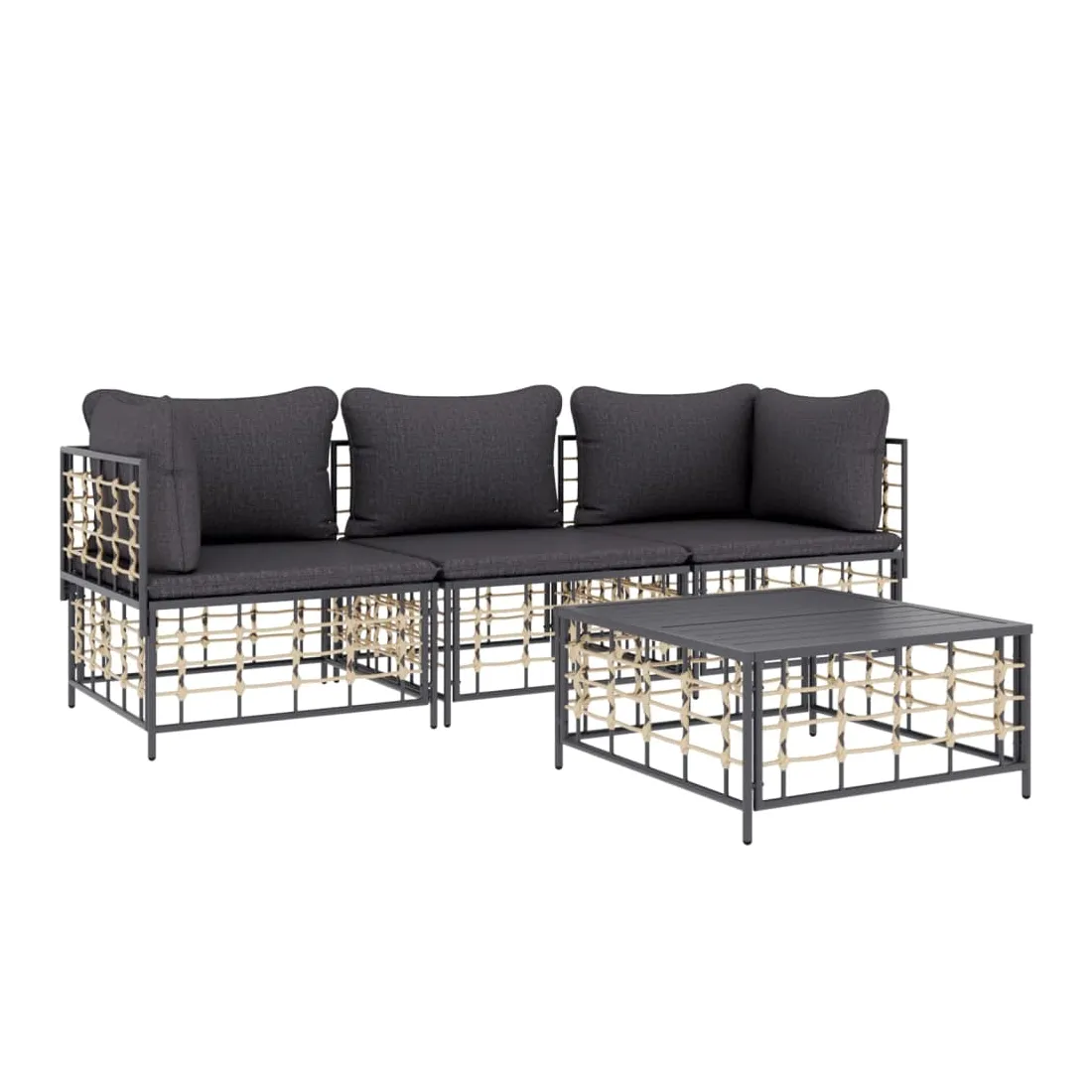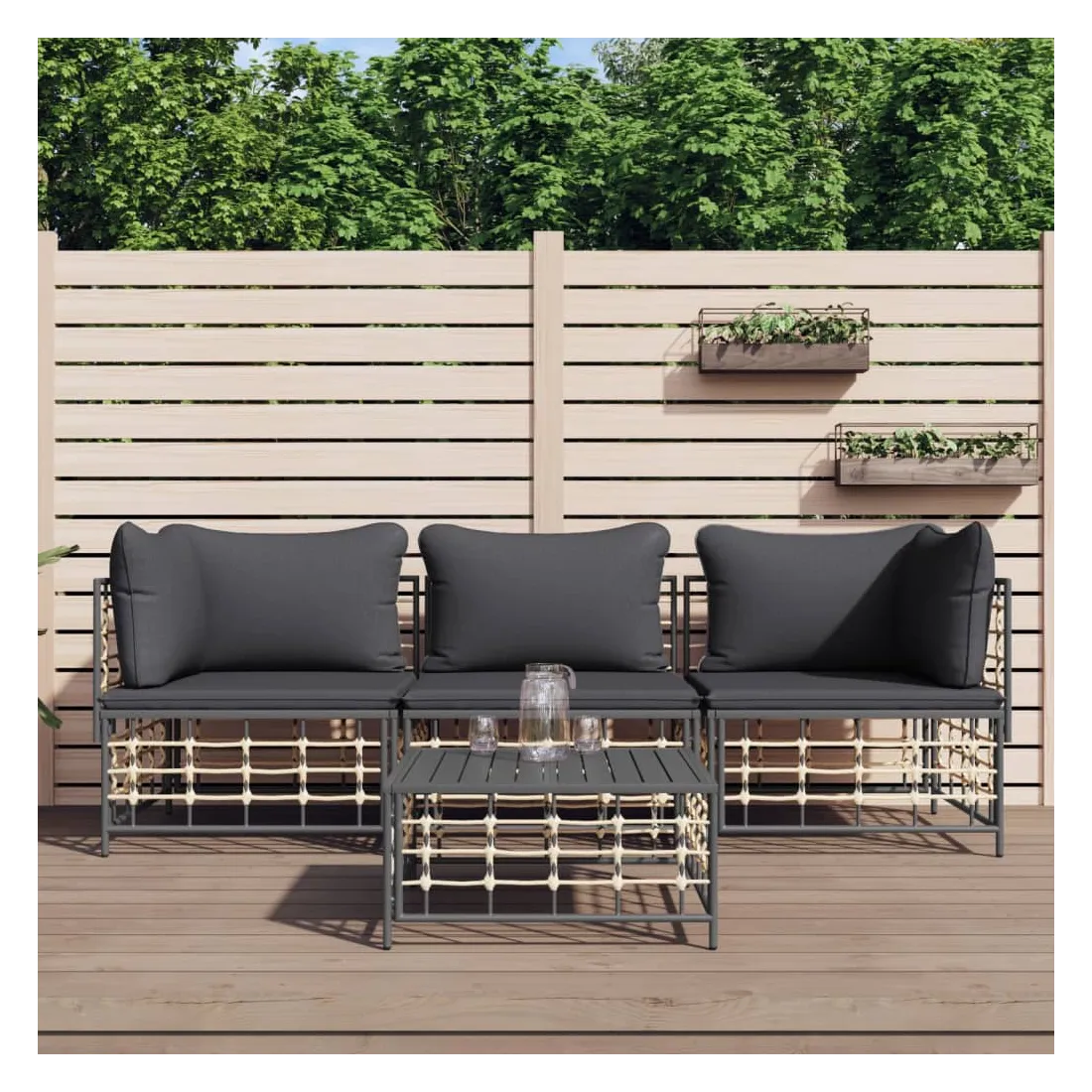 Profitez d'un moment de café confortable dans votre espace extérieur avec cet ensemble de salon de jardin ! C'est un complément parfait à votre jardin et à votre terrasse, créant une impression durable ! Matériau résistant aux intempéries : le poly rotin est résistant aux intempéries et facile à nettoyer. Il reste beau à l'extérieur pendant une longue période de temps. Il est plus économique que d'autres matériaux, tout en offrant une excellente qualité, une commodité et un aspect esthétique.Cadre robuste et stable : le cadre en acier de l'ensemble de salon assure robustesse et stabilité.Expérience d'assise confortable : le dossier ajoute un confort d'assise supplémentaire pour l'ensemble de salon. De plus, les coussins bien rembourrés offrent un confort pour votre temps d'assise.Dessus de table robuste : le dessus de table robuste de la table basse est parfait pour placer des repas, des boissons, des vases, des bols de fruits ou d'autres objets décoratifs.Conception modulaire : l'ensemble de salon de jardin est flexible et facile à déplacer, vous pouvez donc le combiner avec d'autres segments modulaires de la boutique en ligne pour créer vos propres configurations personnelles de salon de jardin ! Remarque :Pour que vos meubles d'extérieur restent beaux, nous vous recommandons de les protéger avec une housse imperméable.