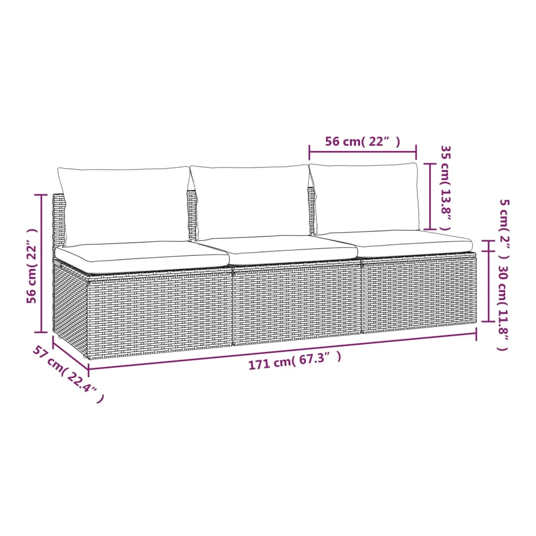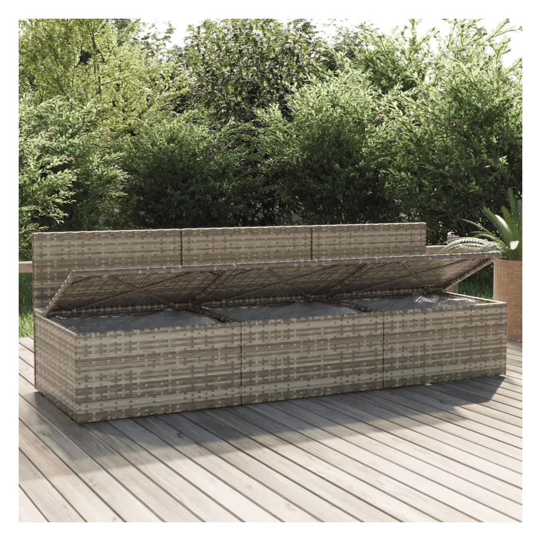 vidaXLCe canapé de jardin 3 places tendance, au design élégant et contemporain, est un excellent choix pour manger ou vous détendre dans votre jardin. Matériau durable : la résine tressée est un matériau de résistance exceptionnelle et durable dans différentes conditions météorologiques. Elle nécessite peu d'entretien. Le cadre en acier assure la solidité et la stabilité.Expérience de siège confortable : des coussins et des oreillers supplémentaires sont inclus pour votre confort.Grand espace de rangement : l'espace de rangement facilite l'organisation des articles. Il convient au rangement de vos coussins, oreillers, couvertures, jouets et autres objets.Sac imperméable : le sac imperméable doté d'une couverture, d'une fermeture à glissière et d'attaches auto-agrippantes peut garder vos affaires en sécurité et protéger vos articles de l'humidité. Remarque :Afin de prolonger la durée de vie de votre mobilier d'extérieur, nous vous recommandons de le protéger avec une housse imperméable.Chaque produit est livré avec un manuel de montage dans la boîte pour un montage facile.