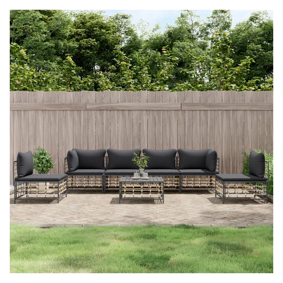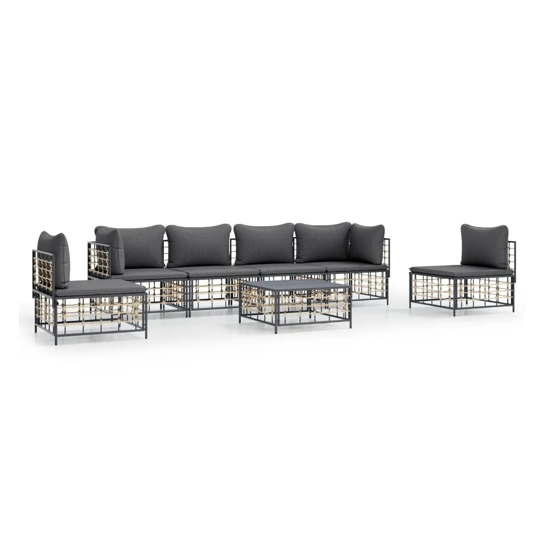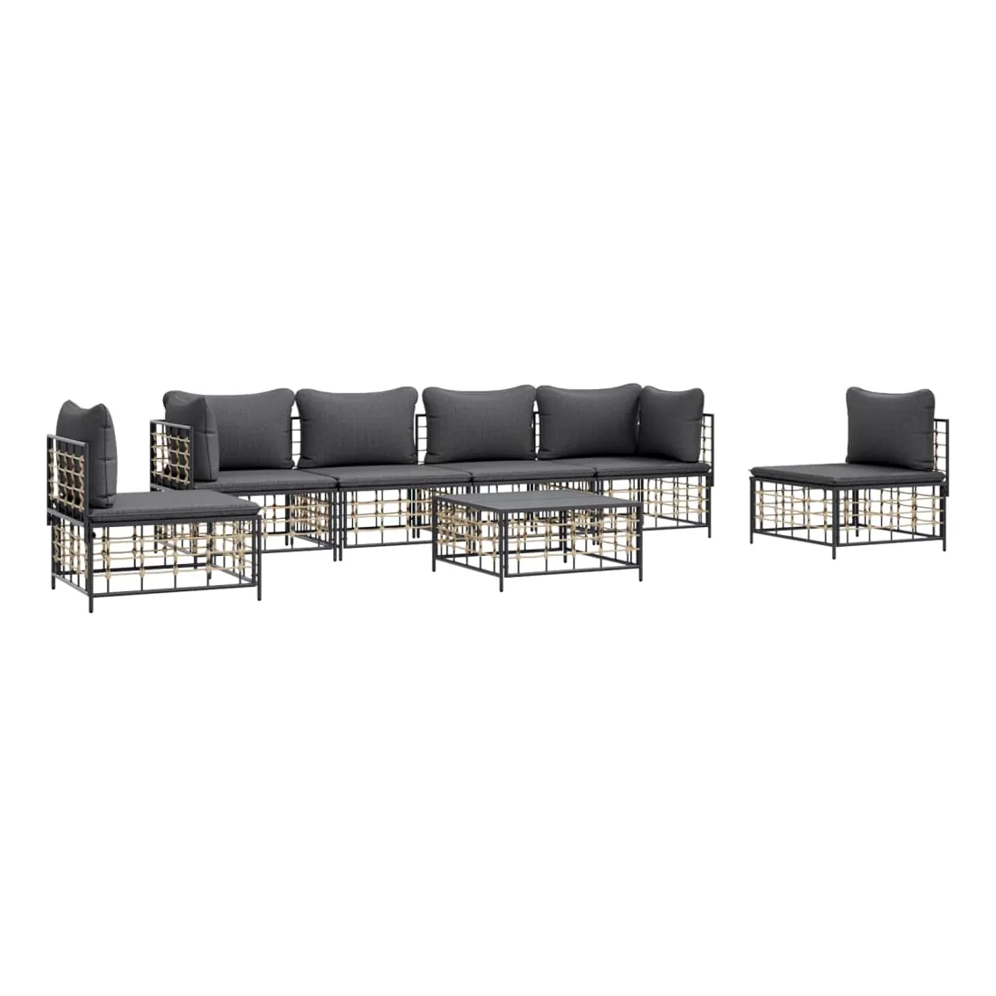Profitez d'un moment de café confortable dans votre espace extérieur avec cet ensemble de salon de jardin ! C'est un complément parfait à votre jardin et à votre terrasse, créant une impression durable ! Matériau résistant aux intempéries : le poly rotin est résistant aux intempéries et facile à nettoyer. Il reste beau à l'extérieur pendant une longue période de temps. Il est plus économique que d'autres matériaux, tout en offrant une excellente qualité, une commodité et un aspect esthétique.Cadre robuste et stable : le cadre en acier de l'ensemble de salon assure robustesse et stabilité.Expérience d'assise confortable : le dossier ajoute un confort d'assise supplémentaire pour l'ensemble de salon. De plus, les coussins bien rembourrés offrent un confort pour votre temps d'assise.Dessus de table robuste : le dessus de table robuste de la table basse est parfait pour placer des repas, des boissons, des vases, des bols de fruits ou d'autres objets décoratifs.Conception modulaire : l'ensemble de salon de jardin est flexible et facile à déplacer, vous pouvez donc le combiner avec d'autres segments modulaires de la boutique en ligne pour créer vos propres configurations personnelles de salon de jardin ! Remarque :Pour que vos meubles d'extérieur restent beaux, nous vous recommandons de les protéger avec une housse imperméable.