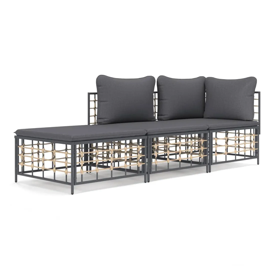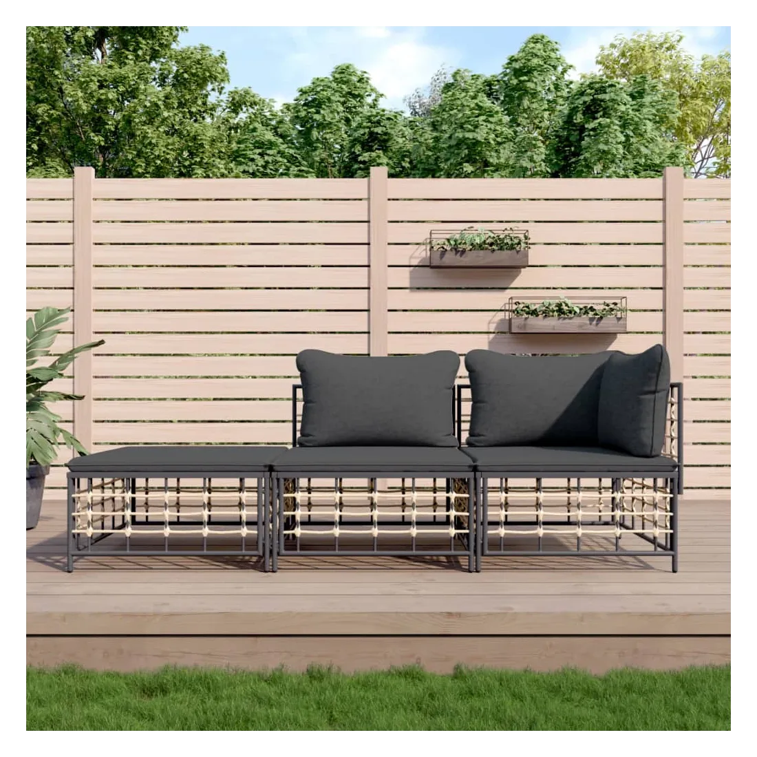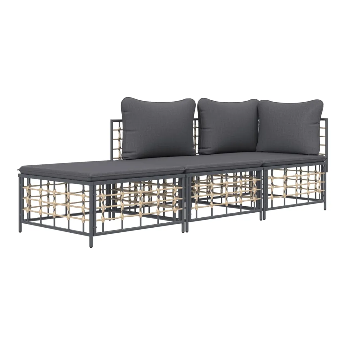 Profitez d'un moment de café confortable dans votre espace extérieur avec cet ensemble de salon de jardin ! C'est un complément parfait à votre jardin et à votre terrasse, créant une impression durable ! Matériau résistant aux intempéries : le poly rotin est résistant aux intempéries et facile à nettoyer. Il reste beau à l'extérieur pendant une longue période de temps. Il est plus économique que d'autres matériaux, tout en offrant une excellente qualité, une commodité et un aspect esthétique.Cadre robuste et stable : le cadre en acier de l'ensemble de salon assure robustesse et stabilité.Expérience d'assise confortable : le dossier ajoute un confort d'assise supplémentaire pour l'ensemble de salon. De plus, les coussins bien rembourrés offrent un confort pour votre temps d'assise.Conception modulaire : l'ensemble de salon de jardin est flexible et facile à déplacer, vous pouvez donc le combiner avec d'autres segments modulaires de la boutique en ligne pour créer vos propres configurations personnelles de salon de jardin ! Remarque :Pour que vos meubles d'extérieur restent beaux, nous vous recommandons de les protéger avec une housse imperméable.