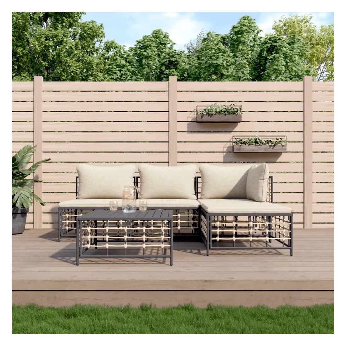 Profitez d'un moment de café confortable dans votre espace extérieur avec cet ensemble de salon de jardin ! C'est un complément parfait à votre jardin et à votre terrasse, créant une impression durable ! Matériau résistant aux intempéries : le poly rotin est résistant aux intempéries et facile à nettoyer. Il reste beau à l'extérieur pendant une longue période de temps. Il est plus économique que d'autres matériaux, tout en offrant une excellente qualité, une commodité et un aspect esthétique.Cadre robuste et stable : le cadre en acier de l'ensemble de salon assure robustesse et stabilité.Expérience d'assise confortable : le dossier ajoute un confort d'assise supplémentaire pour l'ensemble de salon. De plus, les coussins bien rembourrés offrent un confort pour votre temps d'assise.Dessus de table robuste : le dessus de table robuste de la table basse est parfait pour placer des repas, des boissons, des vases, des bols de fruits ou d'autres objets décoratifs.Conception modulaire : l'ensemble de salon de jardin est flexible et facile à déplacer, vous pouvez donc le combiner avec d'autres segments modulaires de la boutique en ligne pour créer vos propres configurations personnelles de salon de jardin ! Remarque :Pour que vos meubles d'extérieur restent beaux, nous vous recommandons de les protéger avec une housse imperméable.
